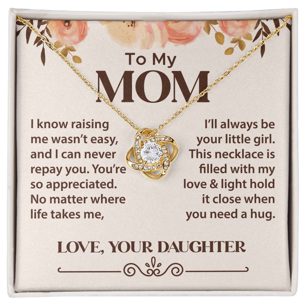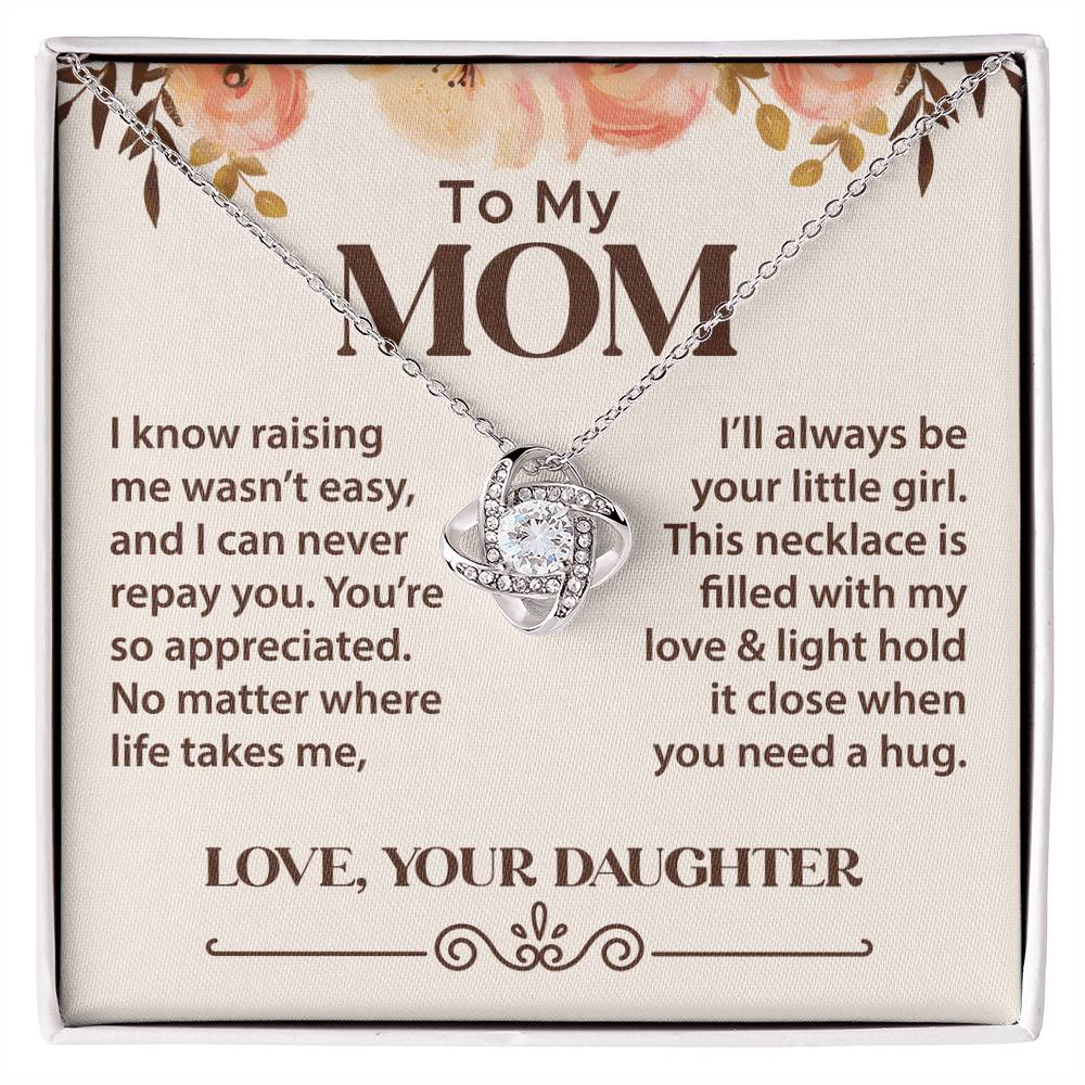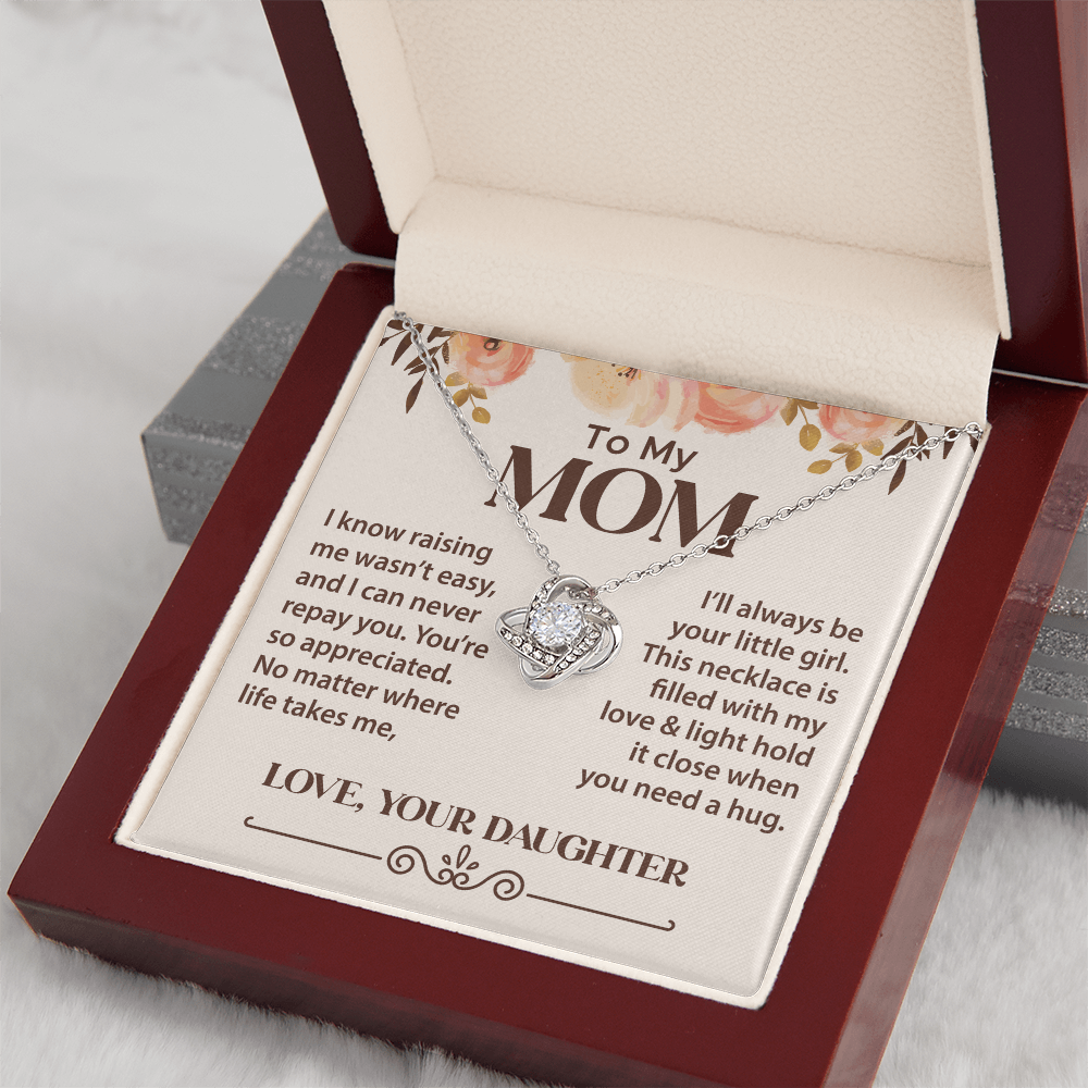 The Love Knot Necklace is a perfect gift for Mom. A sentimental jewelry piece from Daughter to Mom, symbolizing love and your unbreakable bond.