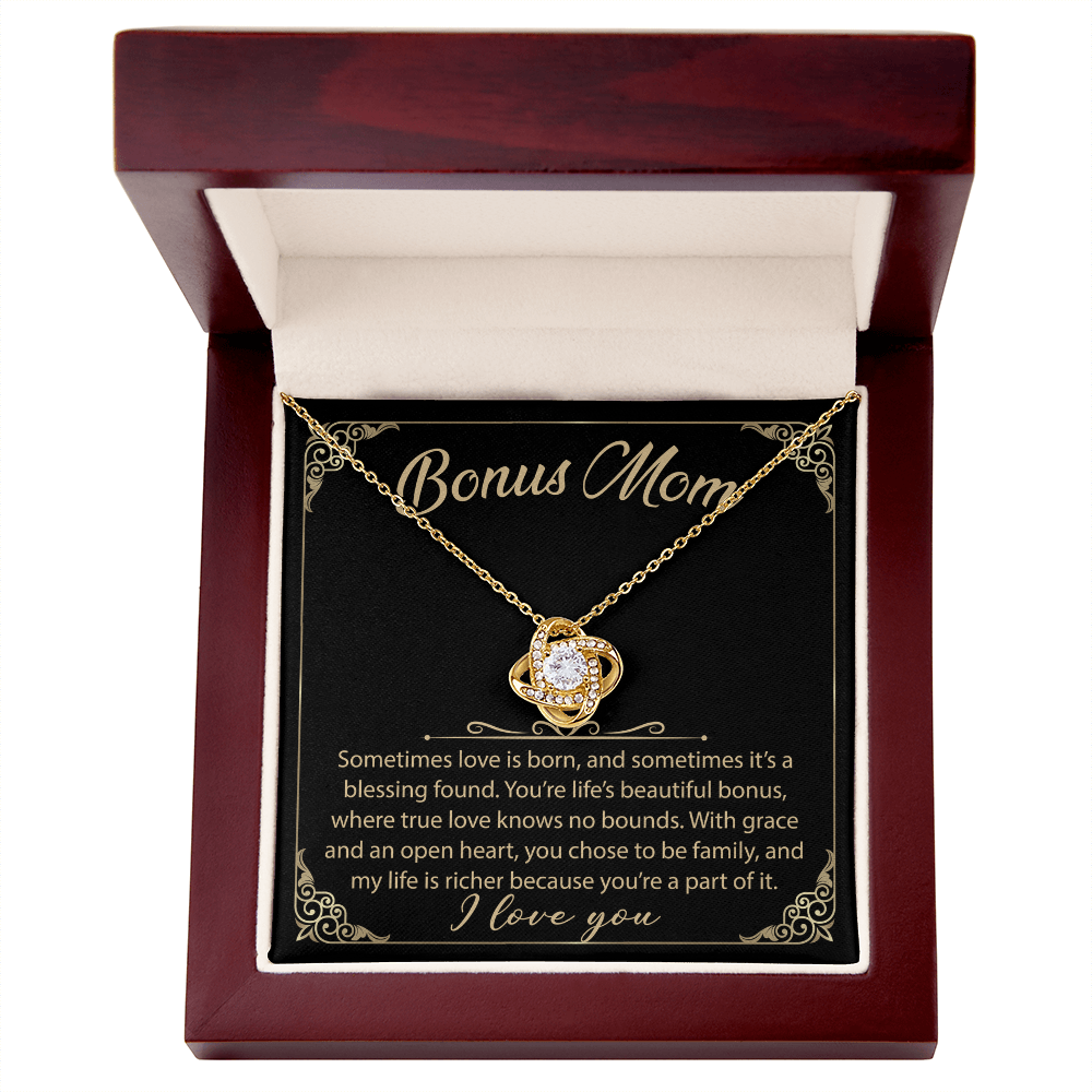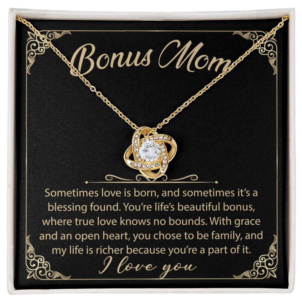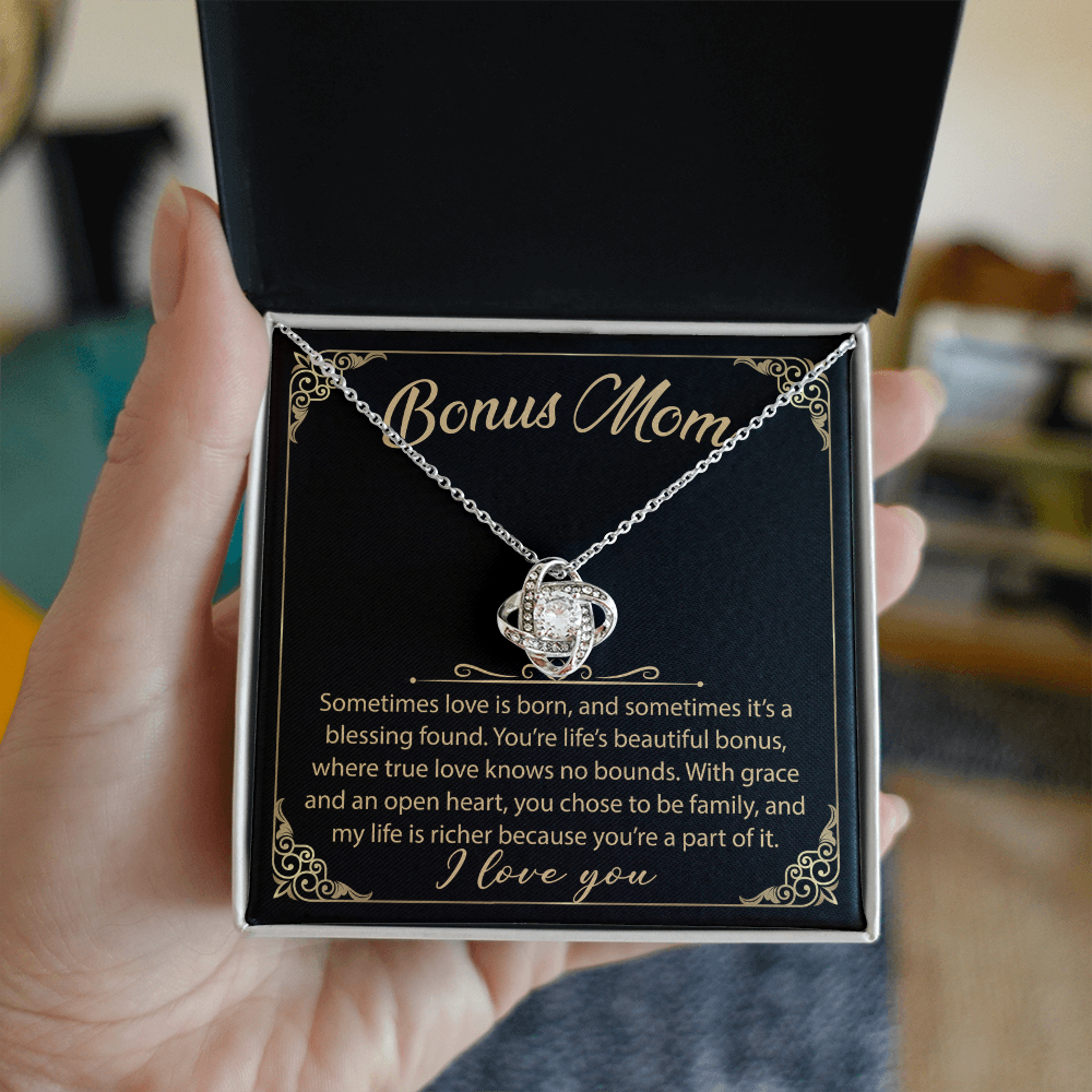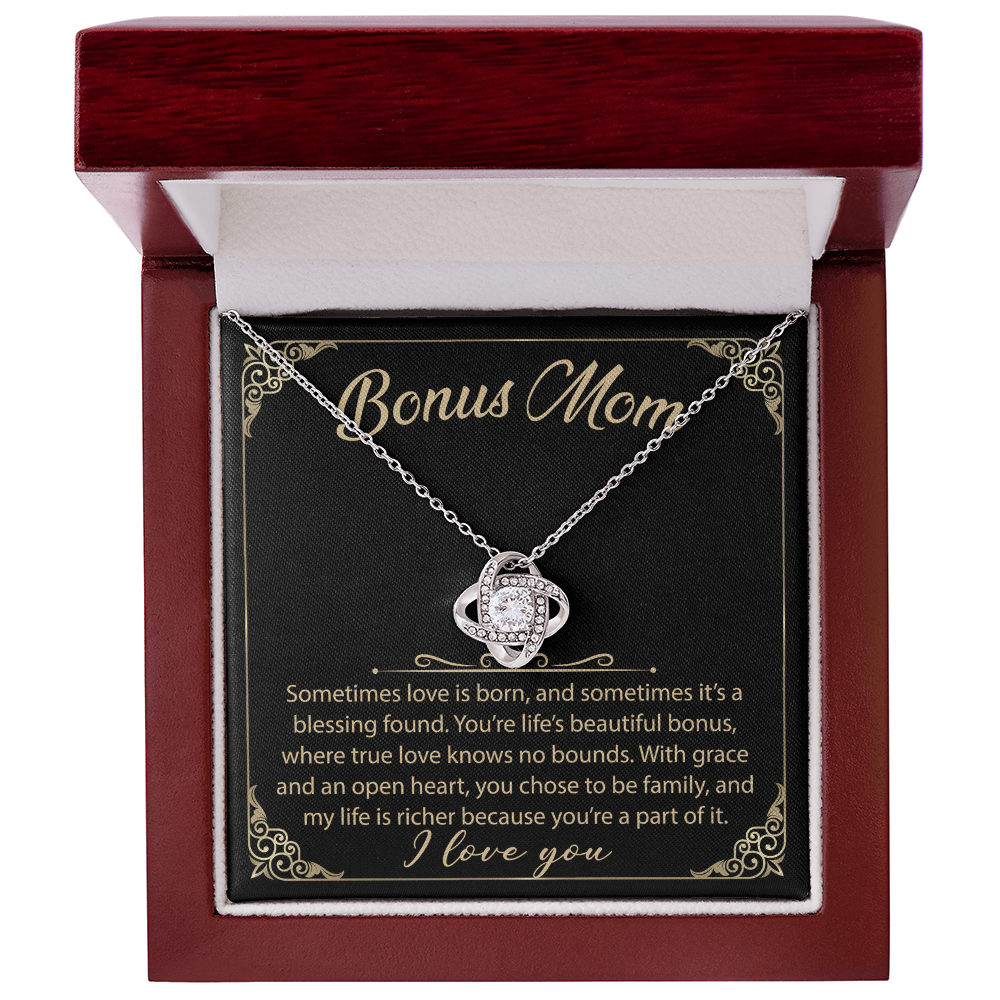 A timeless Love Knot Necklace, a special gift for a Bonus Mom or Step Mom. Show your love and appreciation with this beautiful jewelry piece.