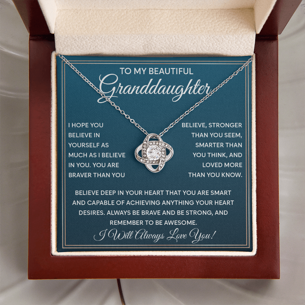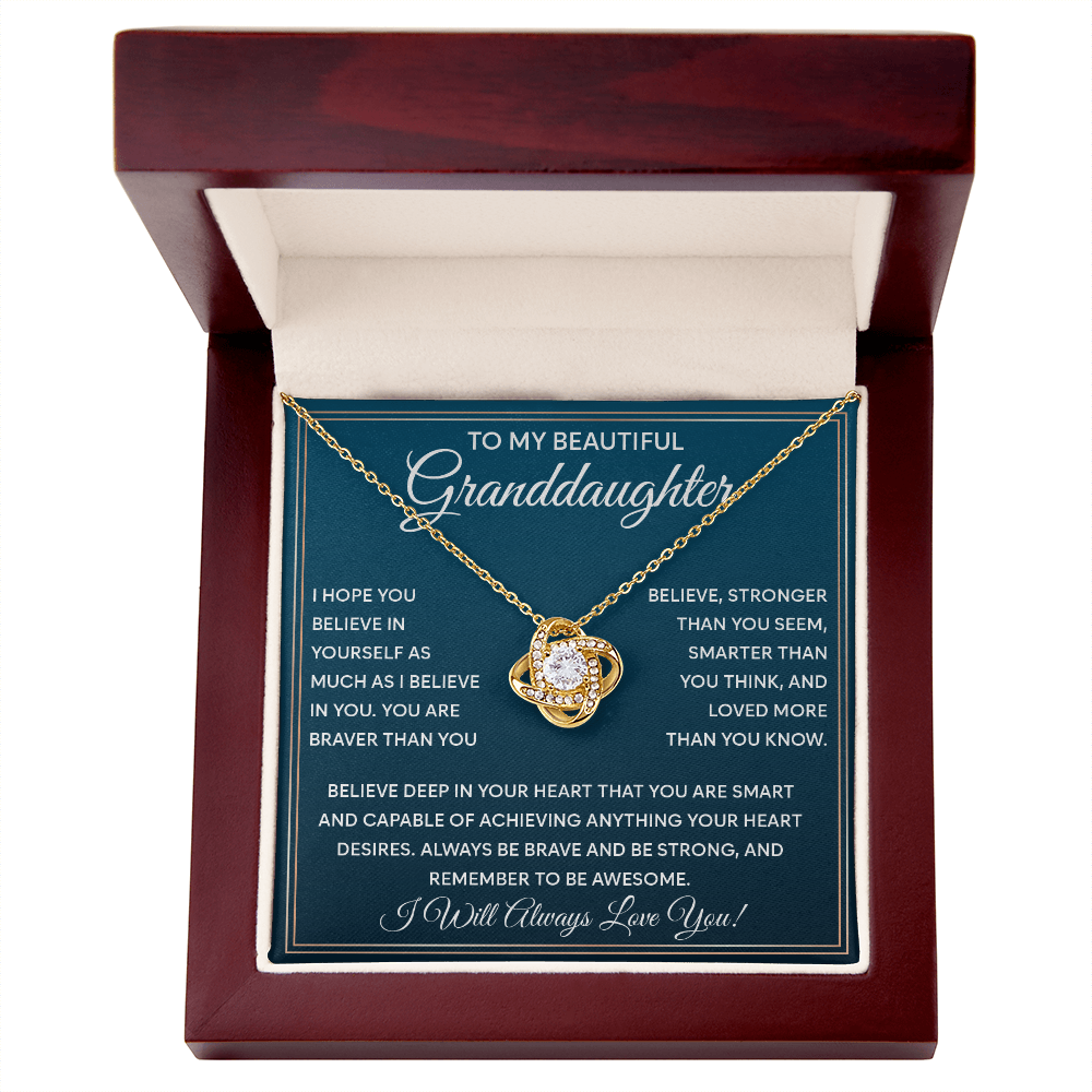 To My Granddaughter - Always Be Brave and Be Strong - Love Knot Necklace