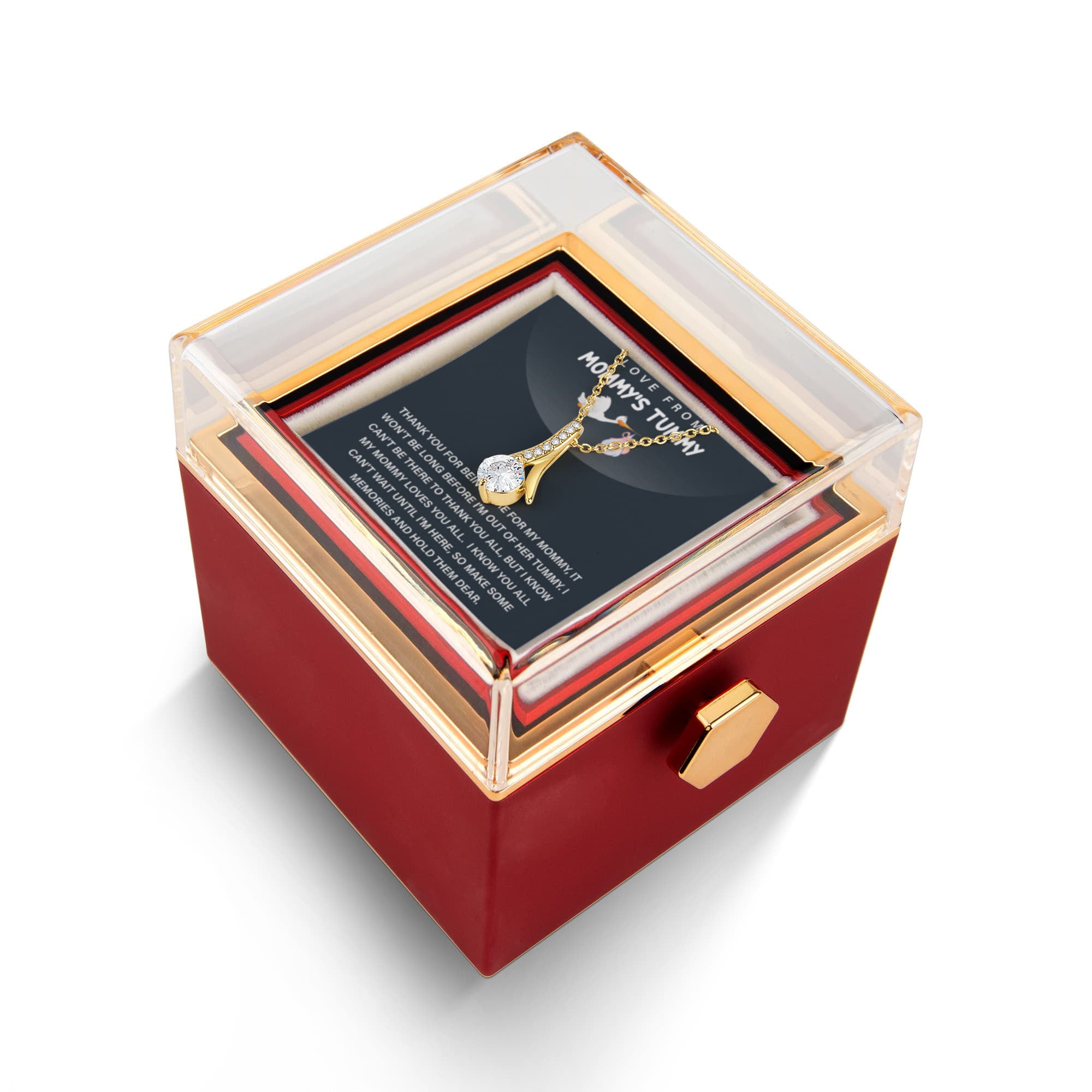 Imagine her reaction as she receives this beautiful Alluring Beauty Necklace. The luxurious box, featuring a charming preserved rose that never fades, adds an extra touch of love. With a simple turn of the gold knob, her breathtaking gift is revealed—making it the perfect sentimental gift for that special someone.