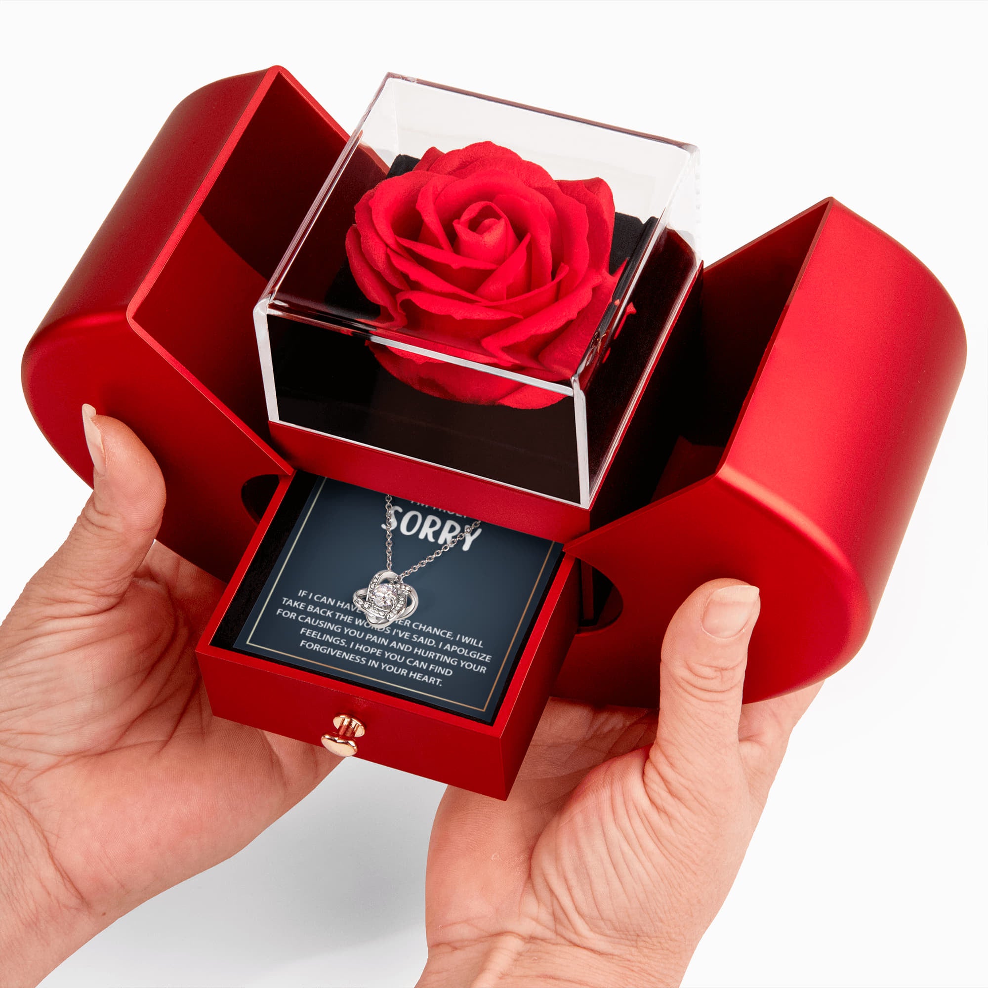 Create an unforgettable gifting experience, with our elegant Rose and Love knot Necklace Gift Set, complete with a festive greeting card. The everlasting Rose symbolizes eternal love, while the sparkling Love knot Necklace serves as the perfect token of your love. Ideal for birthdays, marriage proposals, Mother's Day, or any special occasion, this beautiful package is guaranteed to make your loved one feel truly cherished and appreciated.
