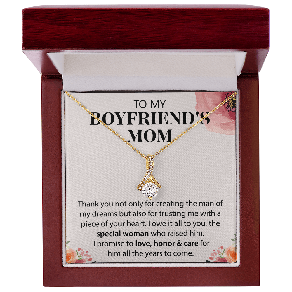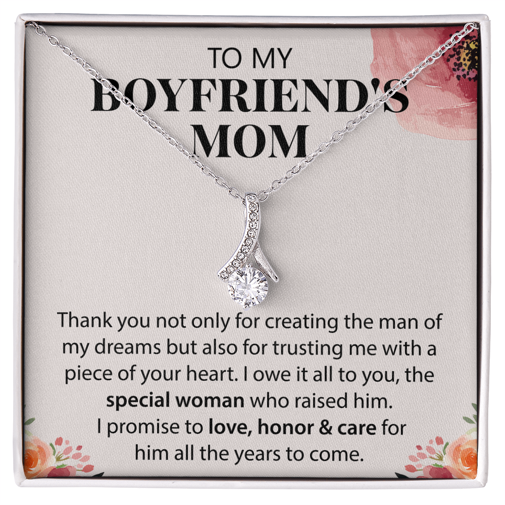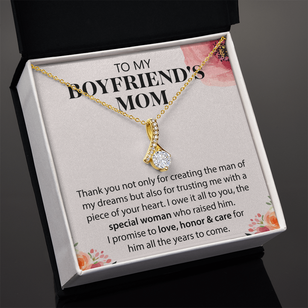 A to my boyfriend’s mom necklace that makes a beautiful gift for boyfriend’s mom, symbolizing gratitude and love in an elegant jewelry piece.