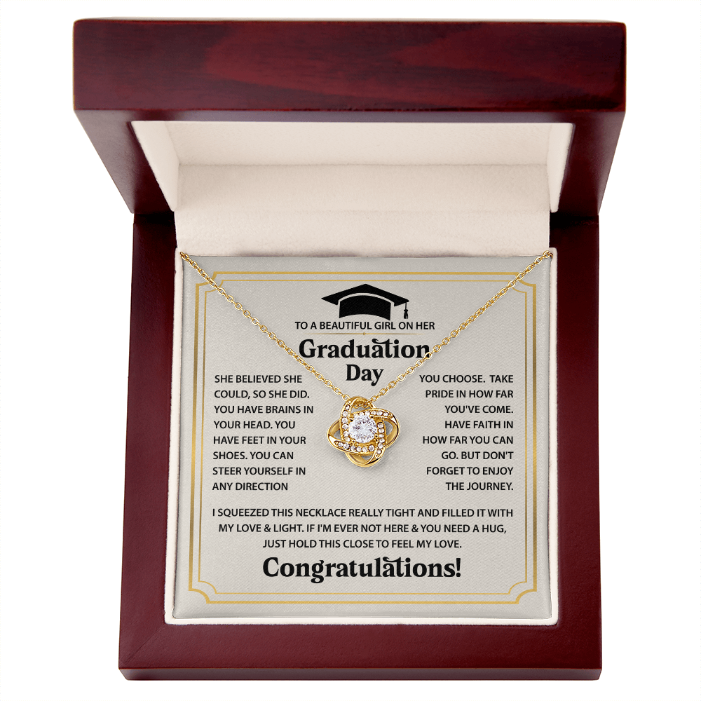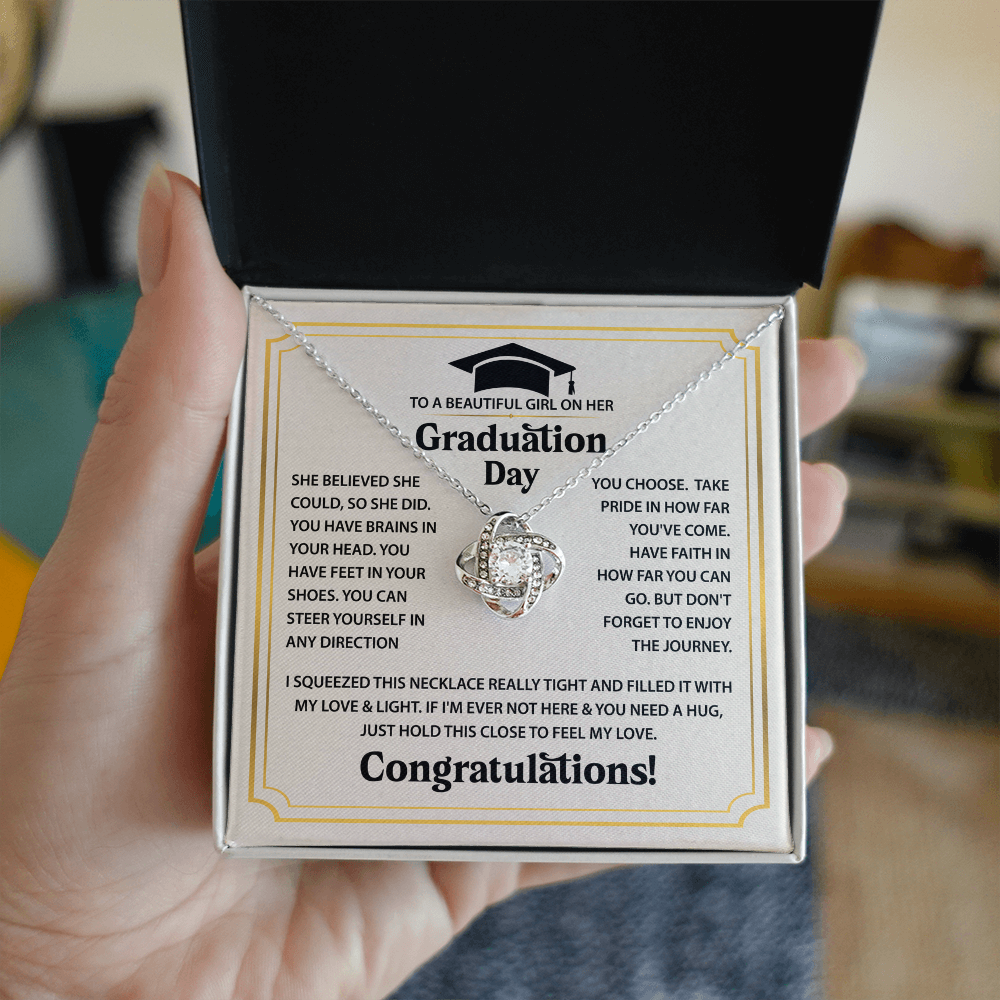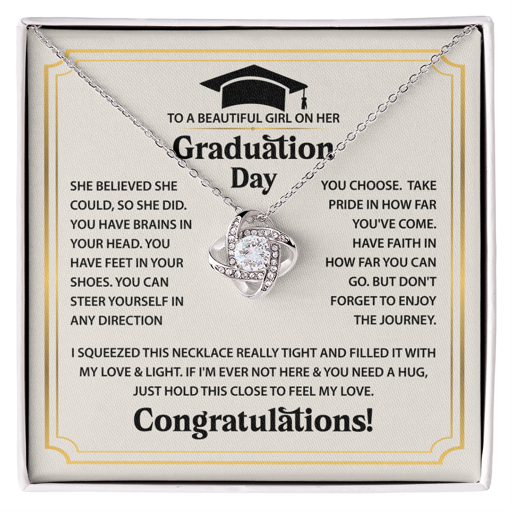 Graduation day is special gift. This Love Knot Necklace from her proud parents. The ideal Jewelry Gift for Her to remember this milestone forever. Mark your daughter’s graduation with a special jewelry gift.