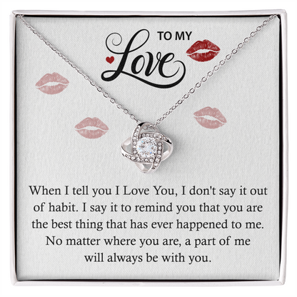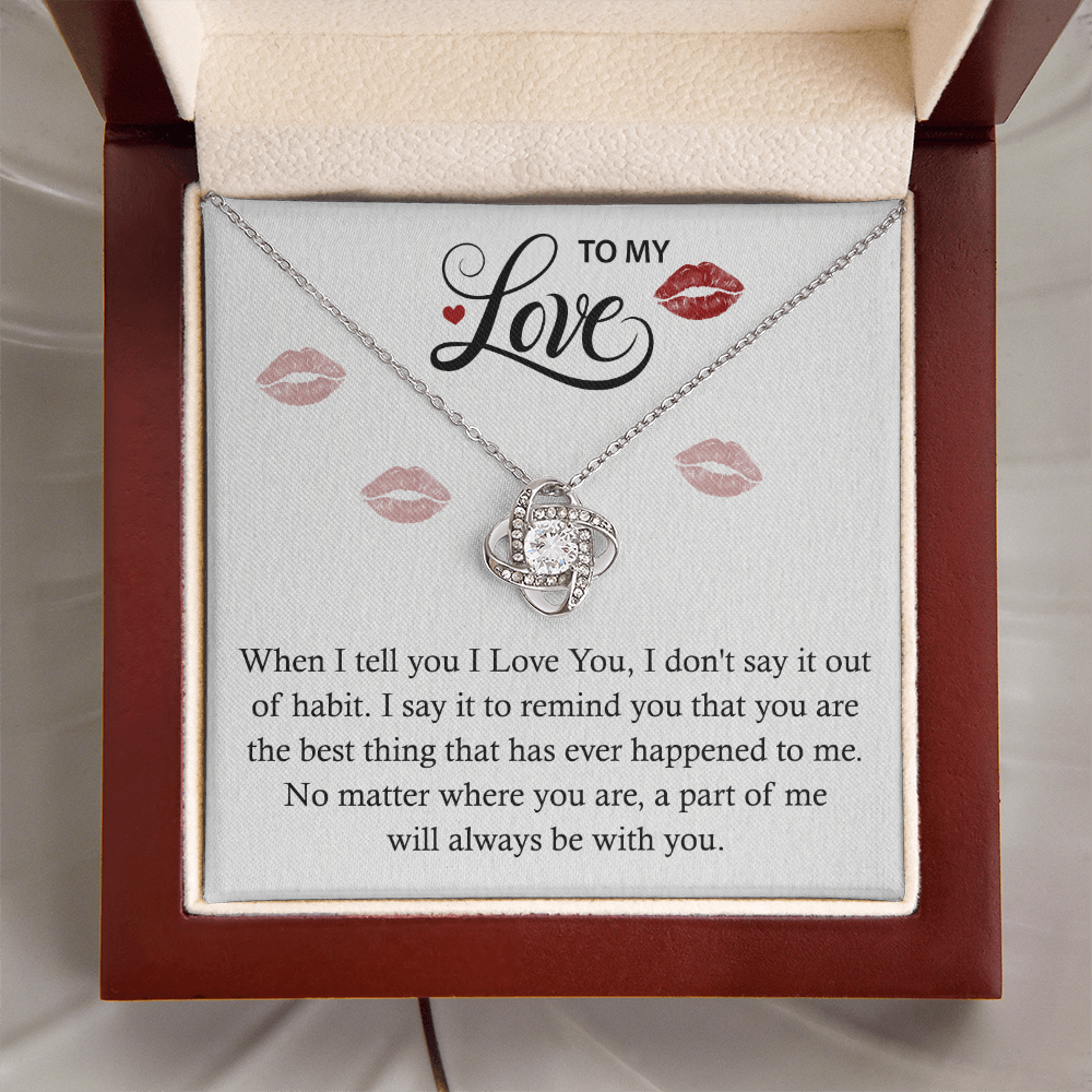 Imagine her reaction receiving this beautiful Love Knot Necklace. Representing an unbreakable bond between two souls, this piece features a beautiful pendant embellished with premium cubic zirconia crystals. Surprise your loved one with this gorgeous gift today!