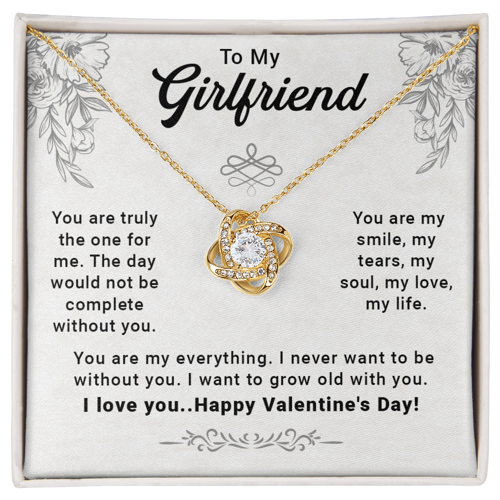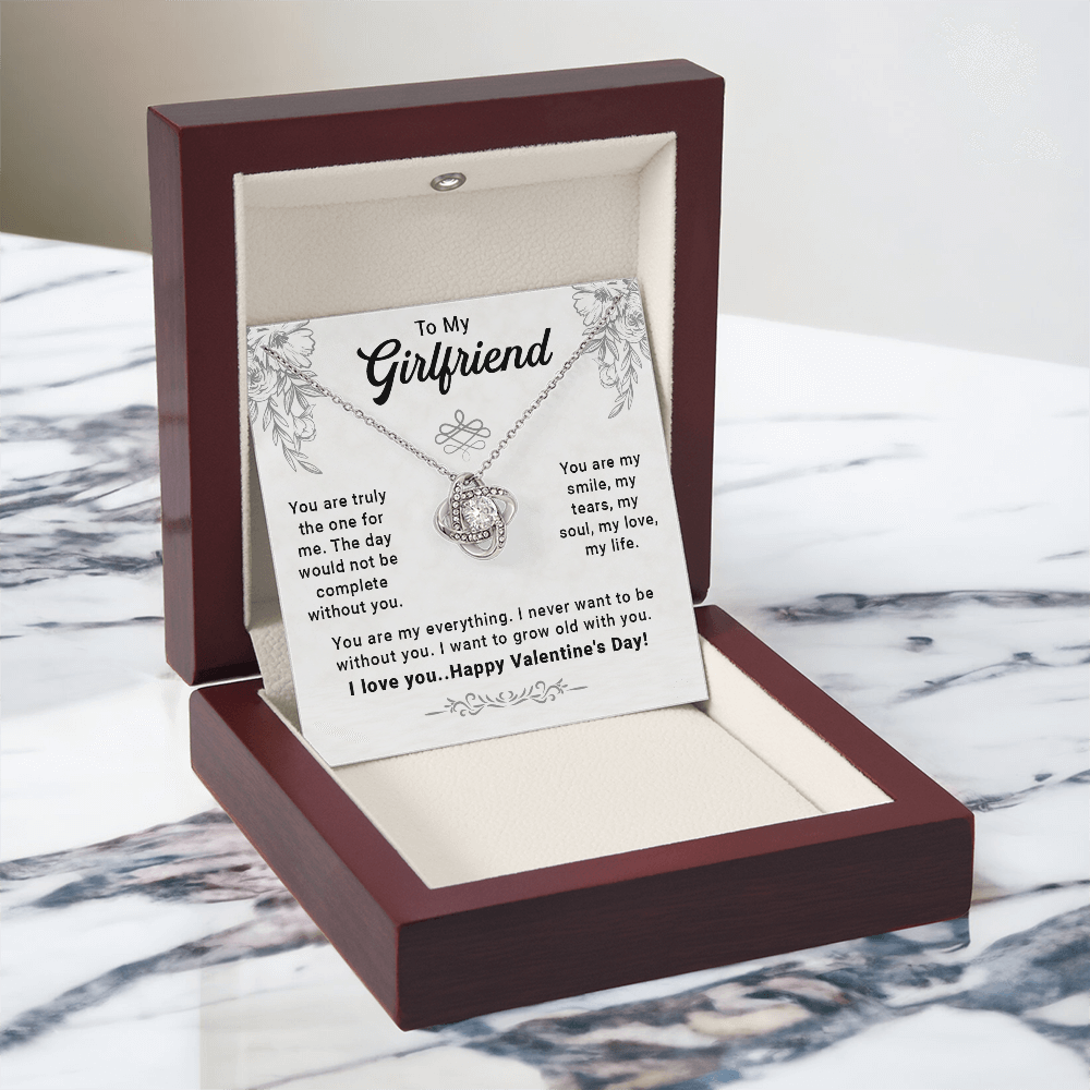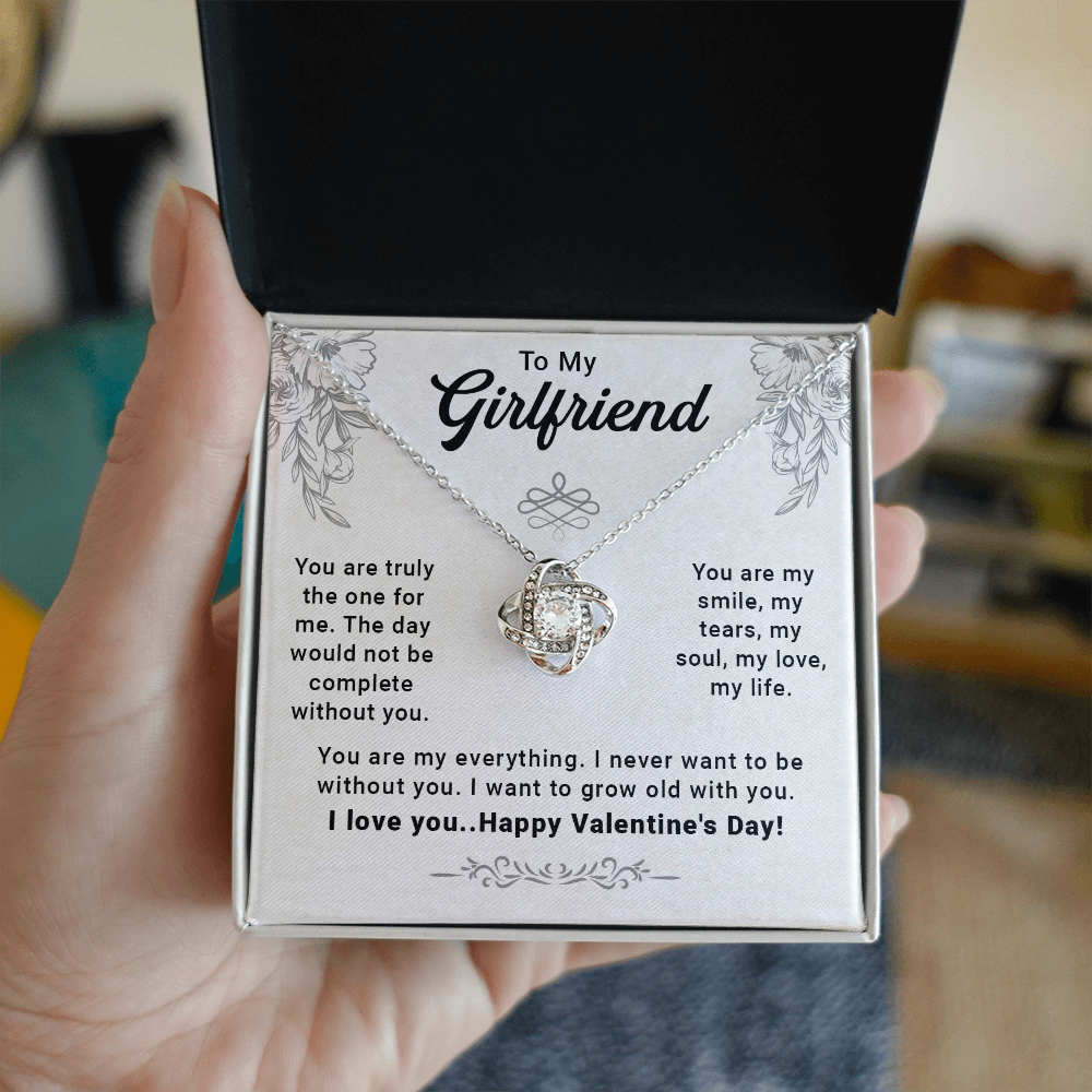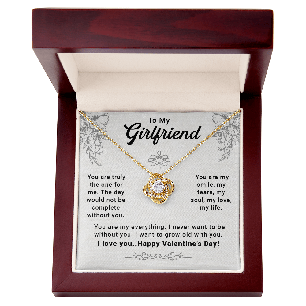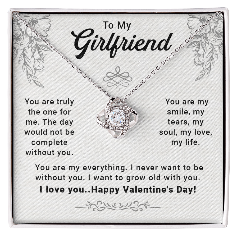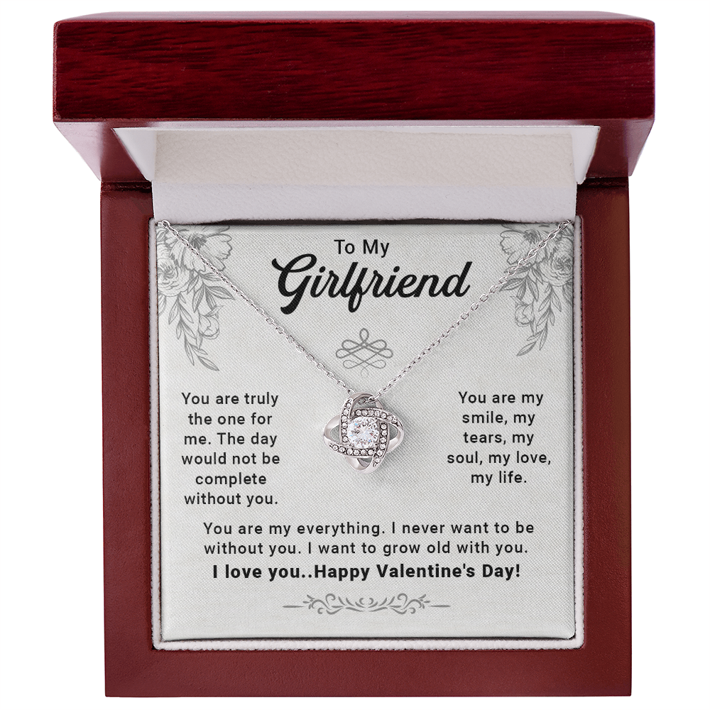 To my incredible girlfriend, you are truly the one for me. From the smile you bring to my face to the love that fills my heart, I can’t imagine my life without you. The Love Knot Necklace symbolizes my eternal love for you, and this Valentine’s Day, I want you to know that you are my everything. Happy Valentine’s Day, my love. I can’t wait to grow old with you by my side.