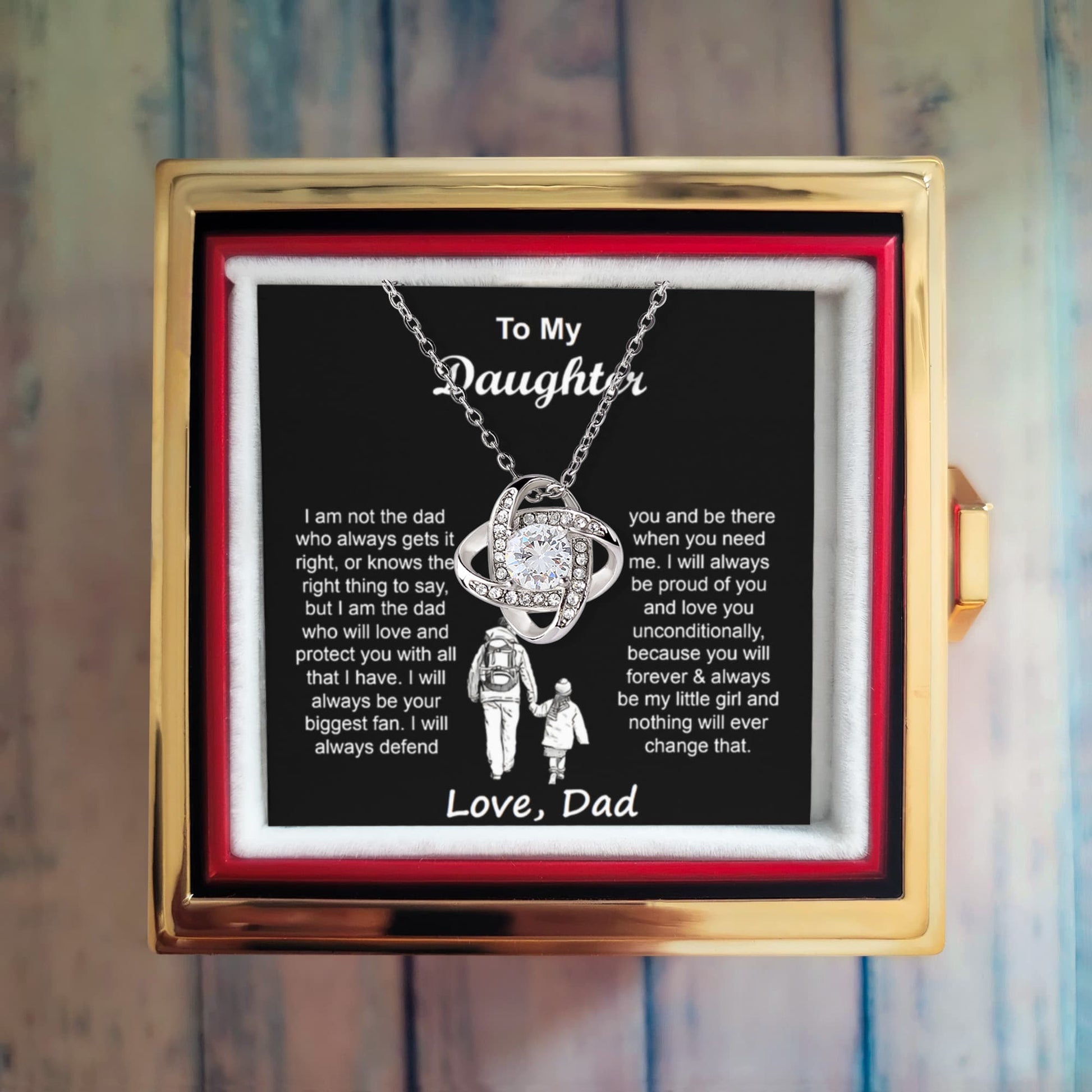 Surprise your daughter with this elegant Love Knot Necklace in a rotating rose box. A meaningful and heartfelt gift she’ll treasure forever. Perfect for birthdays or just because.