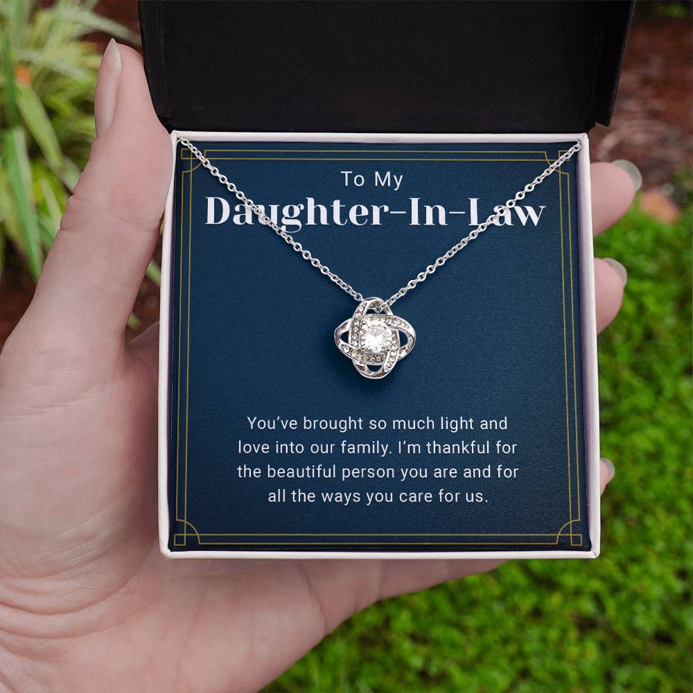 To My Daughter Necklace from Dad – A heartfelt Christmas, birthday, or Valentine's Day gift from father to daughter. This Love Knot necklace features cubic zirconia and comes in a luxurious gift box.
