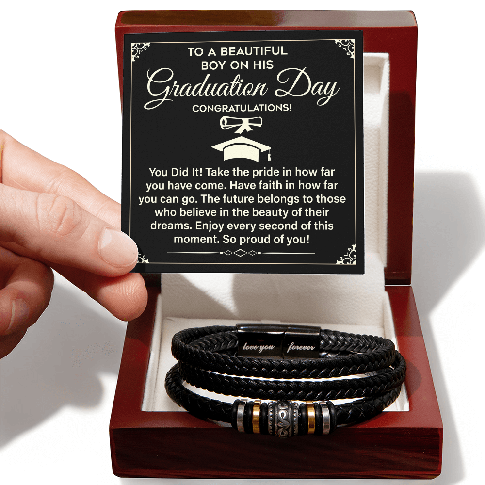 Celebrate his academic journey with our 2025 “Love You Forever” bracelet. A stylish, motivational keepsake that reminds him of your unwavering belief in him.