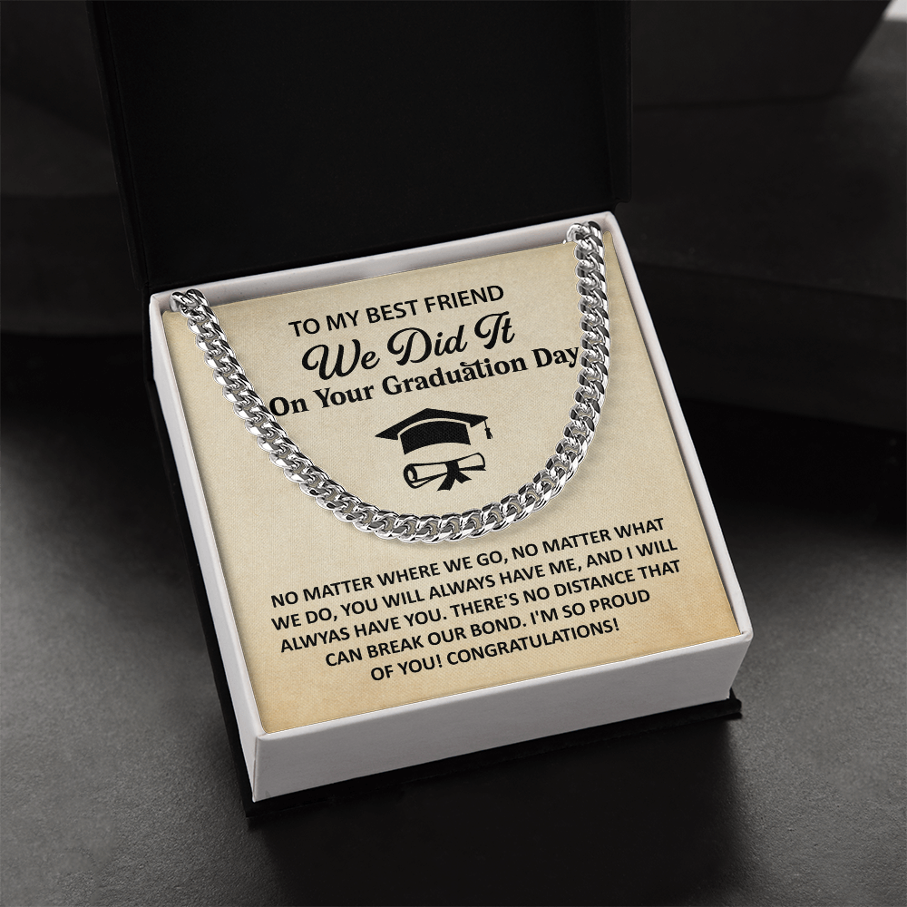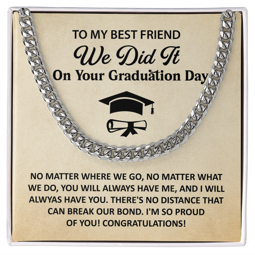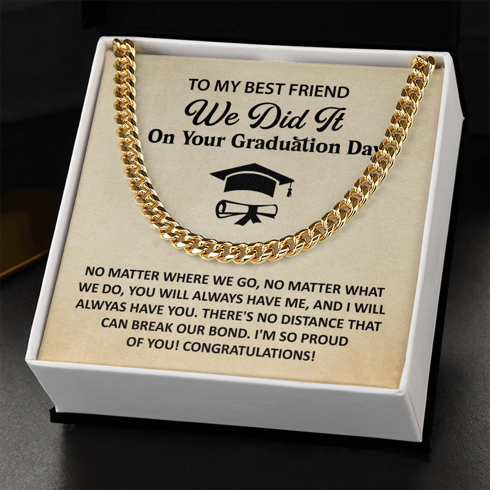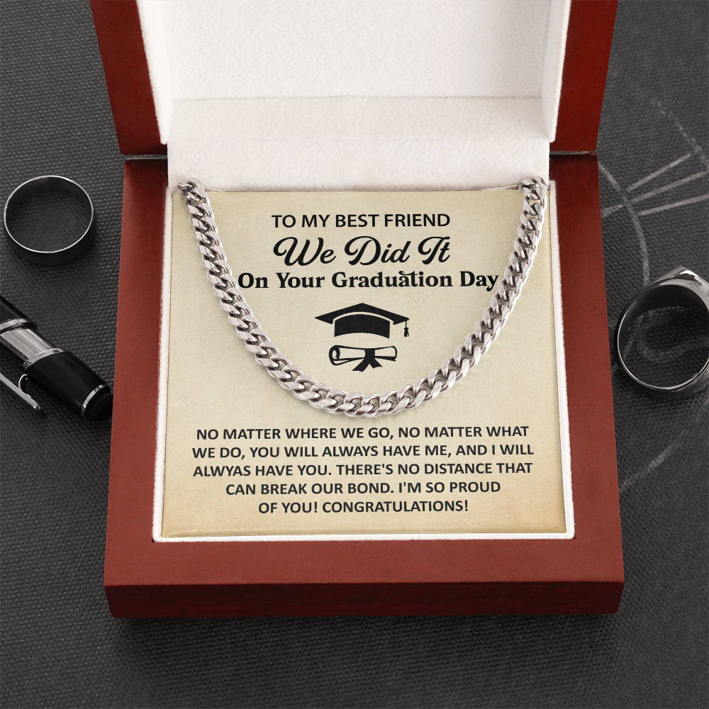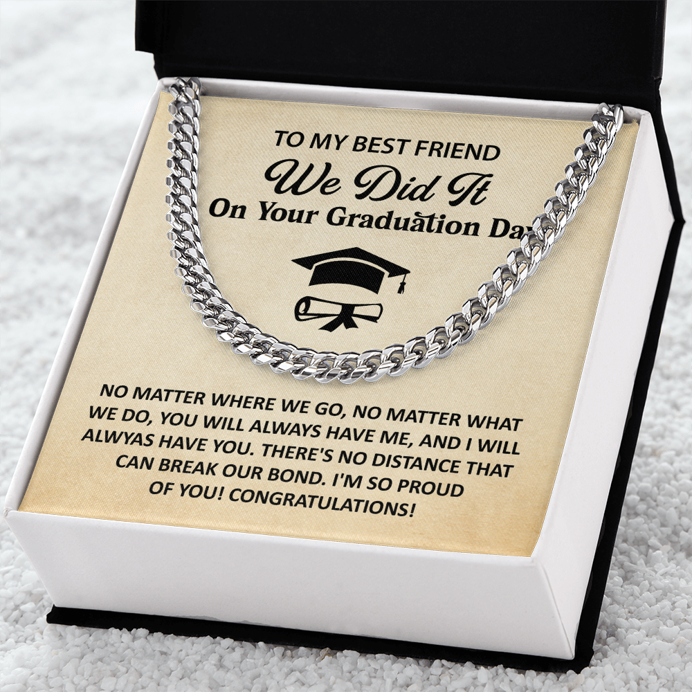Let him know how proud you are. This Cuban Link Chain Necklace makes a standout graduation gift for your best friend. Comes with a heartfelt card and sleek packaging.