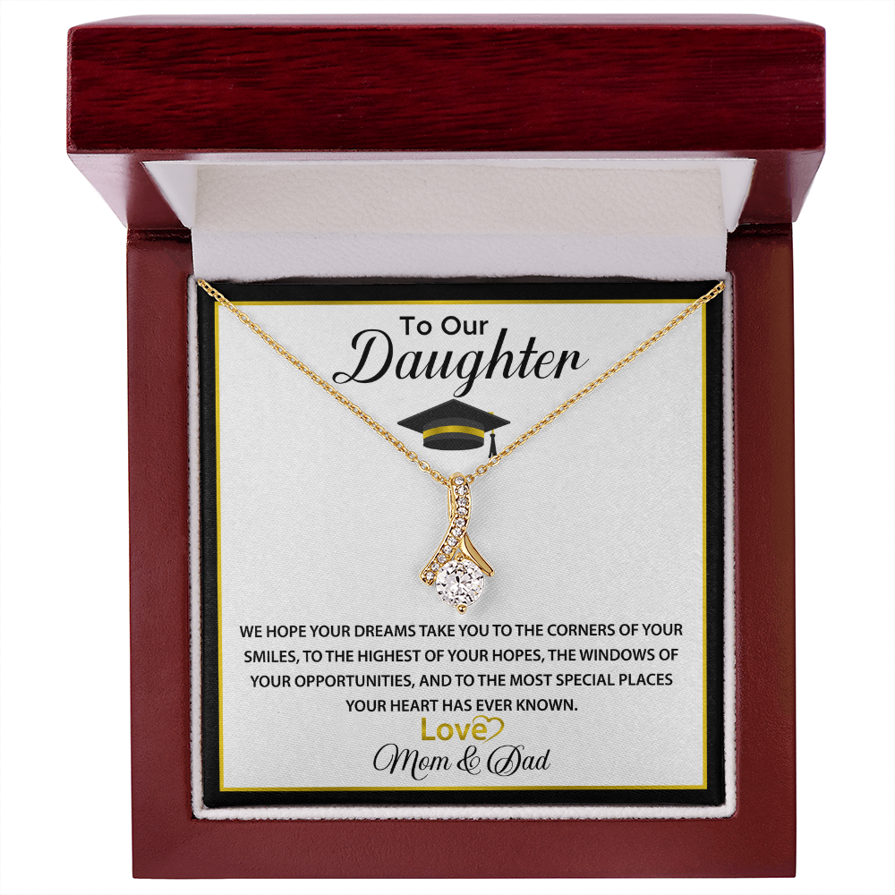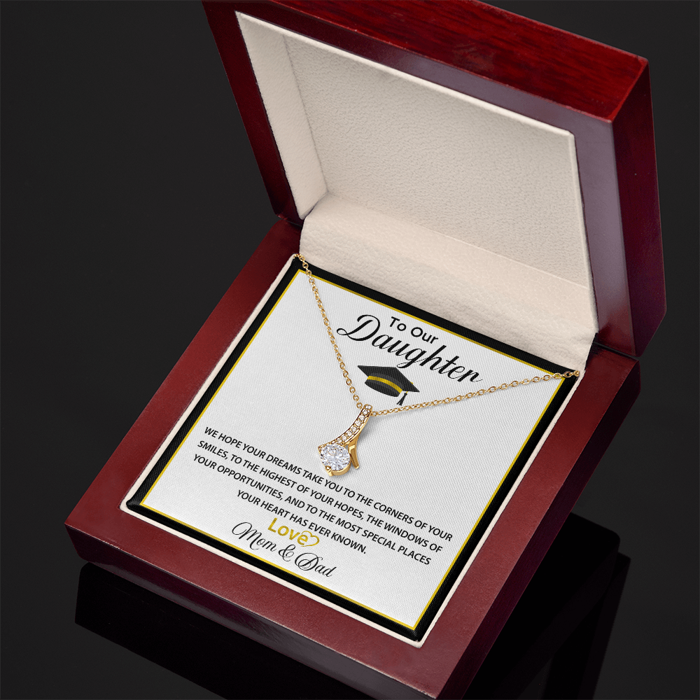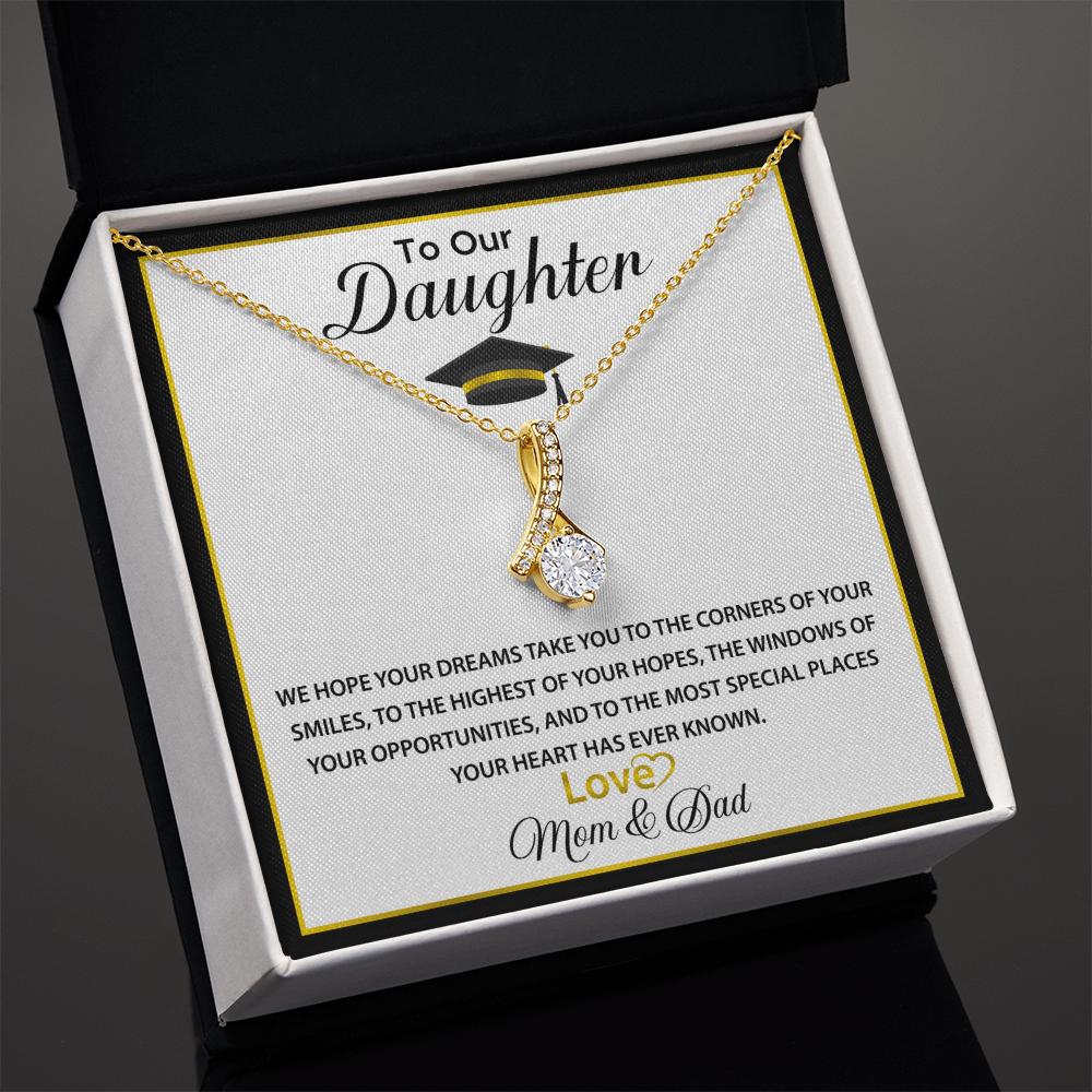 Mark your daughter’s graduation with a special jewelry gift. The Alluring Beauty Necklace is a unique symbol of love, support, and endless pride.
