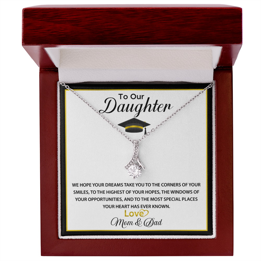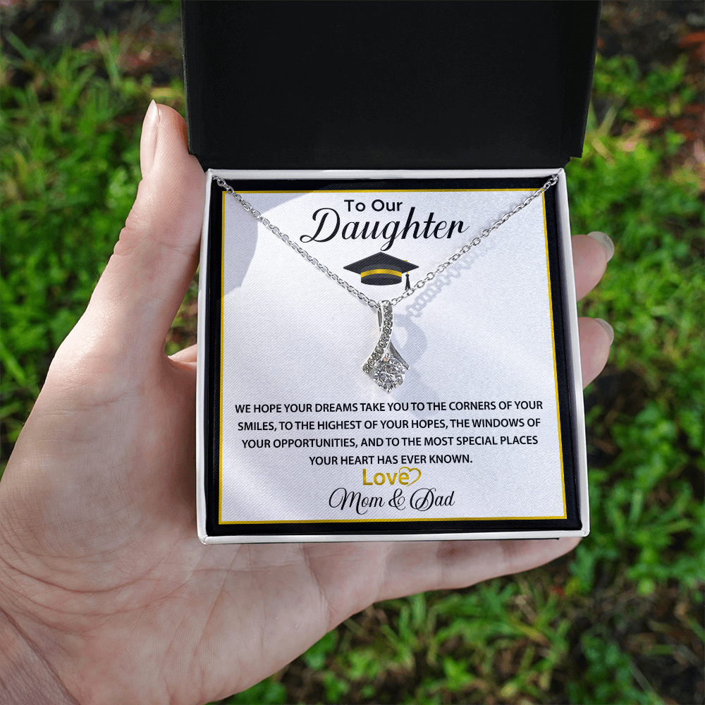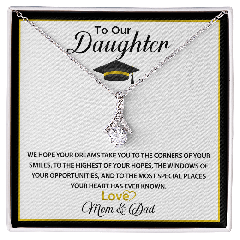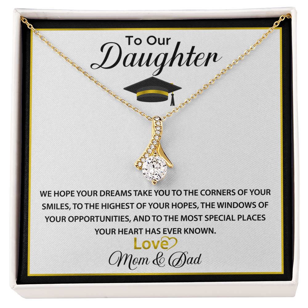 Mark your daughter’s graduation with a special jewelry gift. The Alluring Beauty Necklace is a unique symbol of love, support, and endless pride.