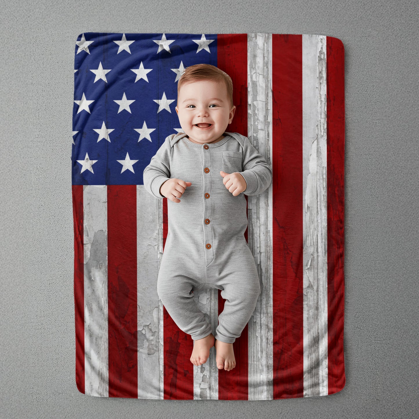 Custom American Flag Blanket – Personalized Patriotic USA Throw for Mom, Dad, Couples