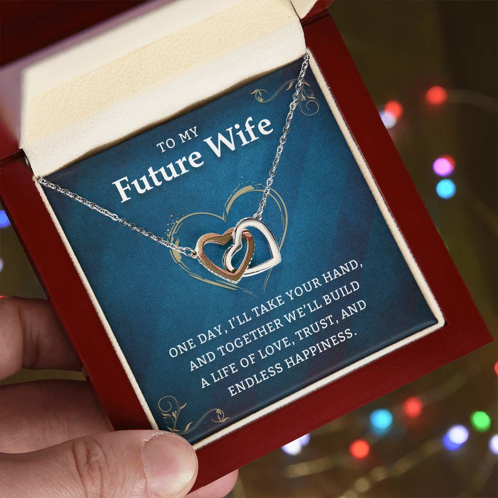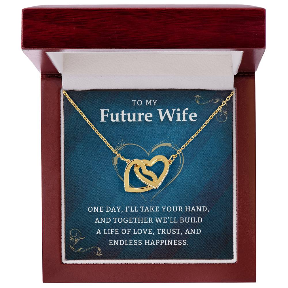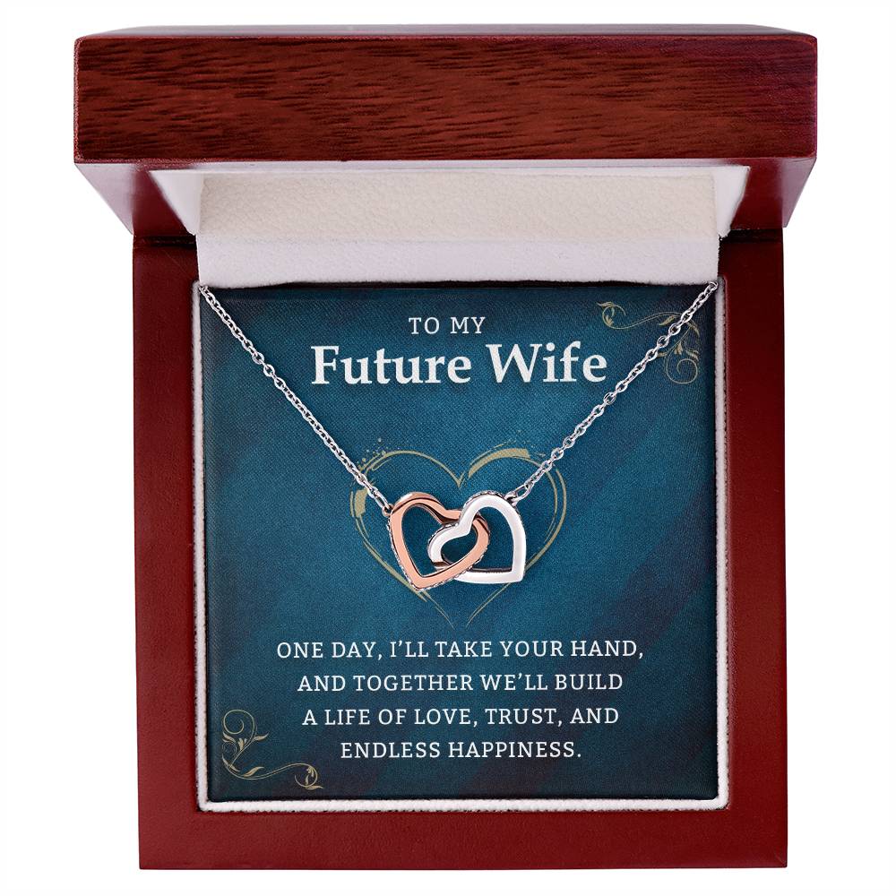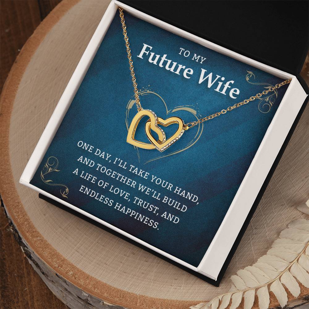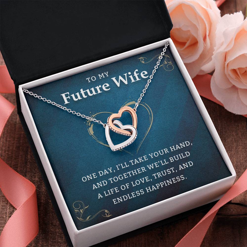 Future Wife Interlocking Heart Necklace with Heartfelt Message, Perfect Valentine, Anniversary, or Birthday Gift for Fiancée and Soulmate