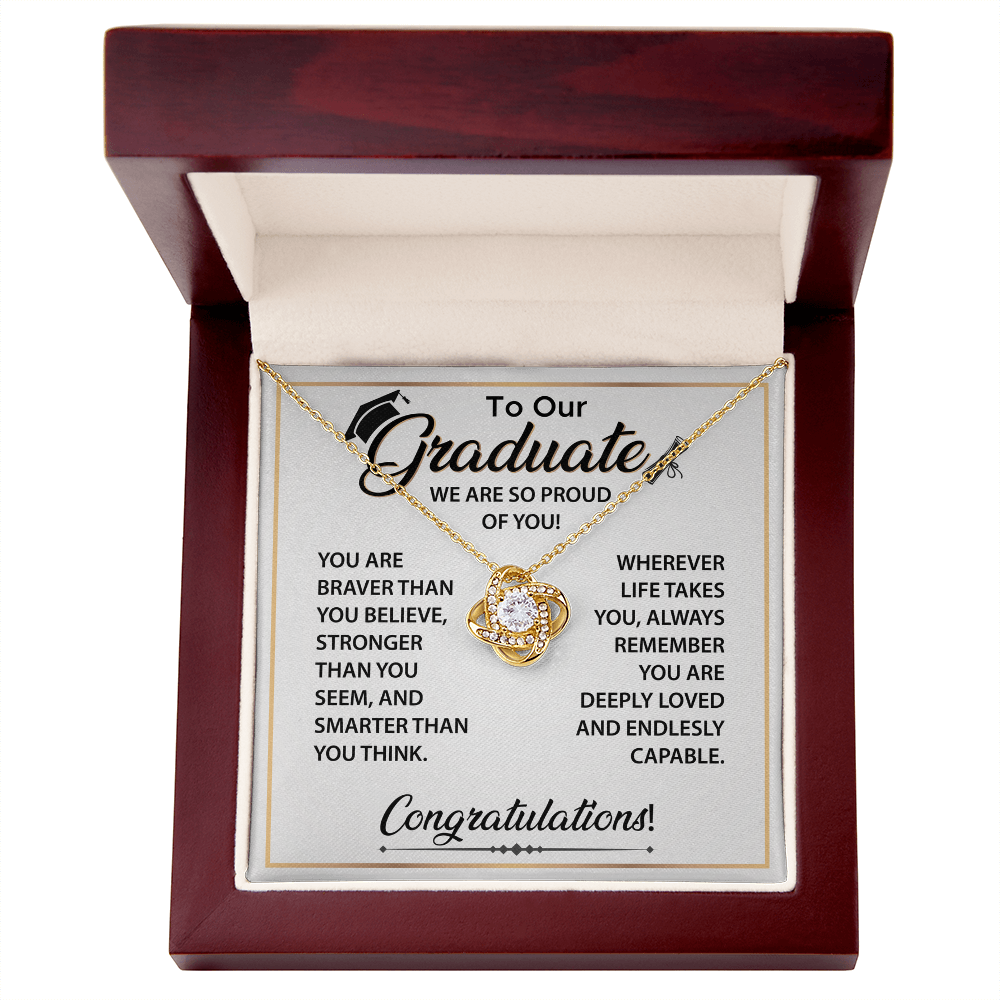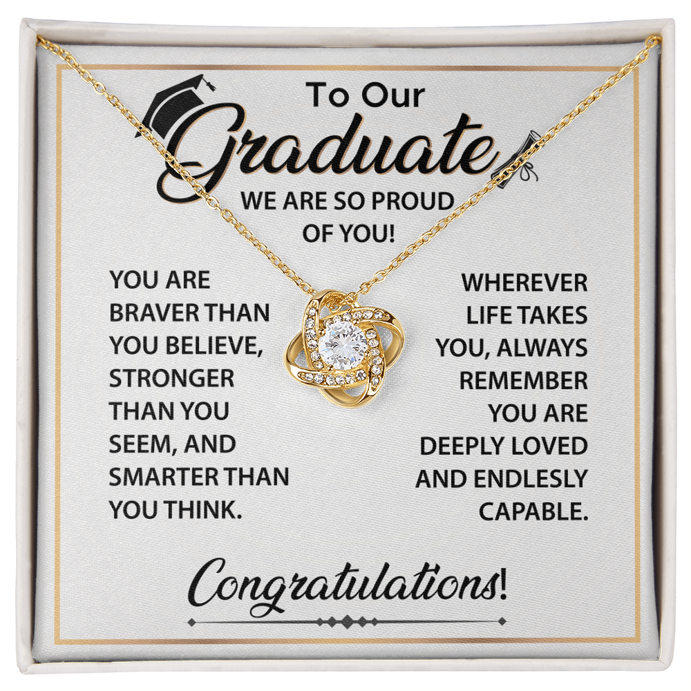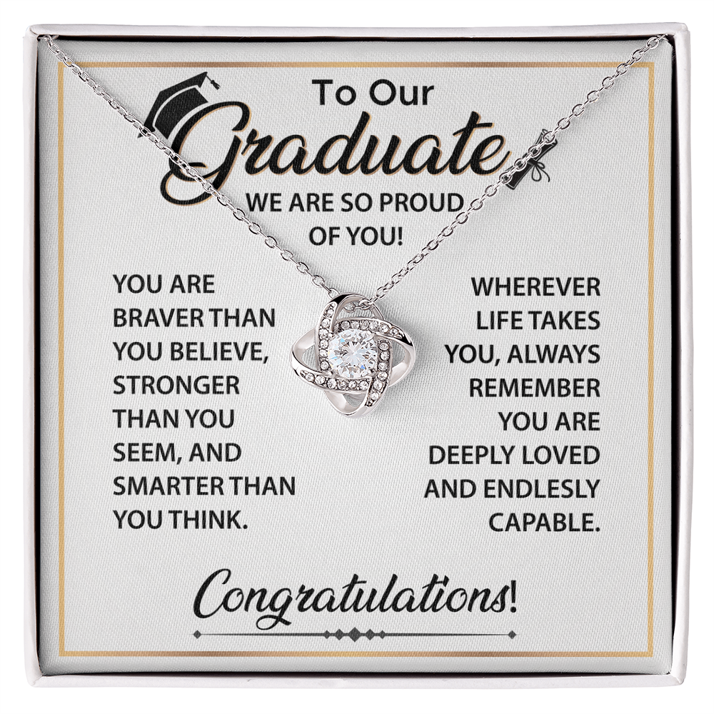The Love Knot Necklace is a sentimental graduation gift from Dad to Daughter. A timeless piece celebrating her journey, dreams, and proud moments.