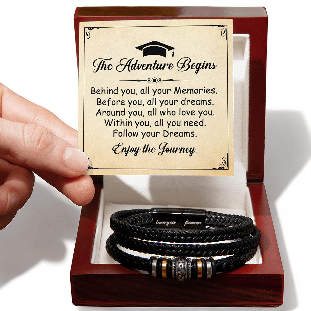 Surprise him with a thoughtful graduation gift. The “Love You Forever” bracelet is crafted to honor milestones and memories. Ideal for boyfriends, husbands, or sons.