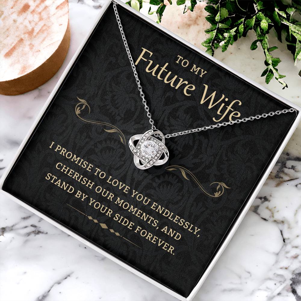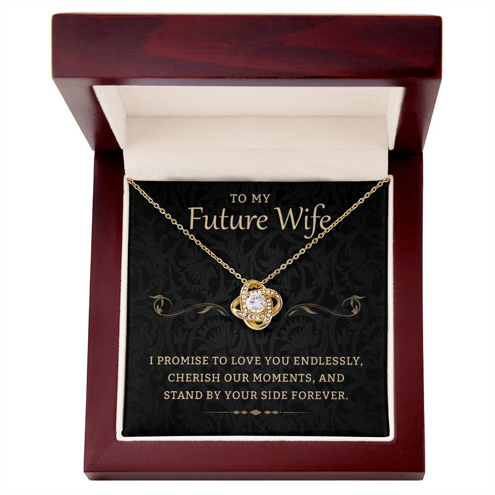 To my future wife: I promise to love you endlessly, cherish our moments, and stand by your side forever. This Love Knot necklace is a symbol of devotion, making it an ideal gift for engagement, birthdays, or Christmas, celebrating your bond with a heartfelt message of love and commitment.