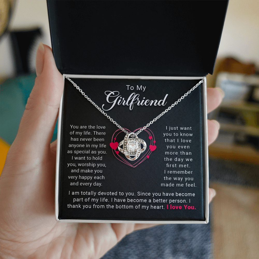 To My Girlfriend, You Are the Love of My Life – Love Knot Necklace, A Heartfelt Valentine's Day Gift to Express My Devotion and Eternal Love