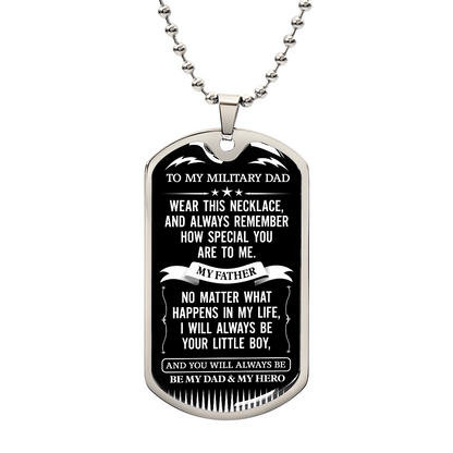 Honor your Military Dad with this luxury dog tag necklace. The perfect gift from son or daughter for Father’s Day, birthdays, or special occasions. Meaningful keepsake for dad.