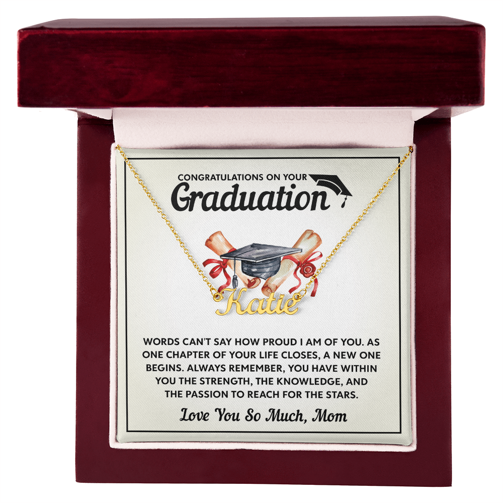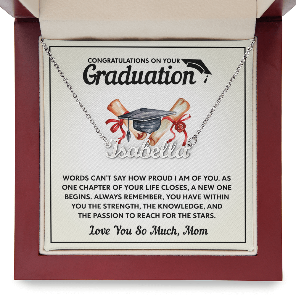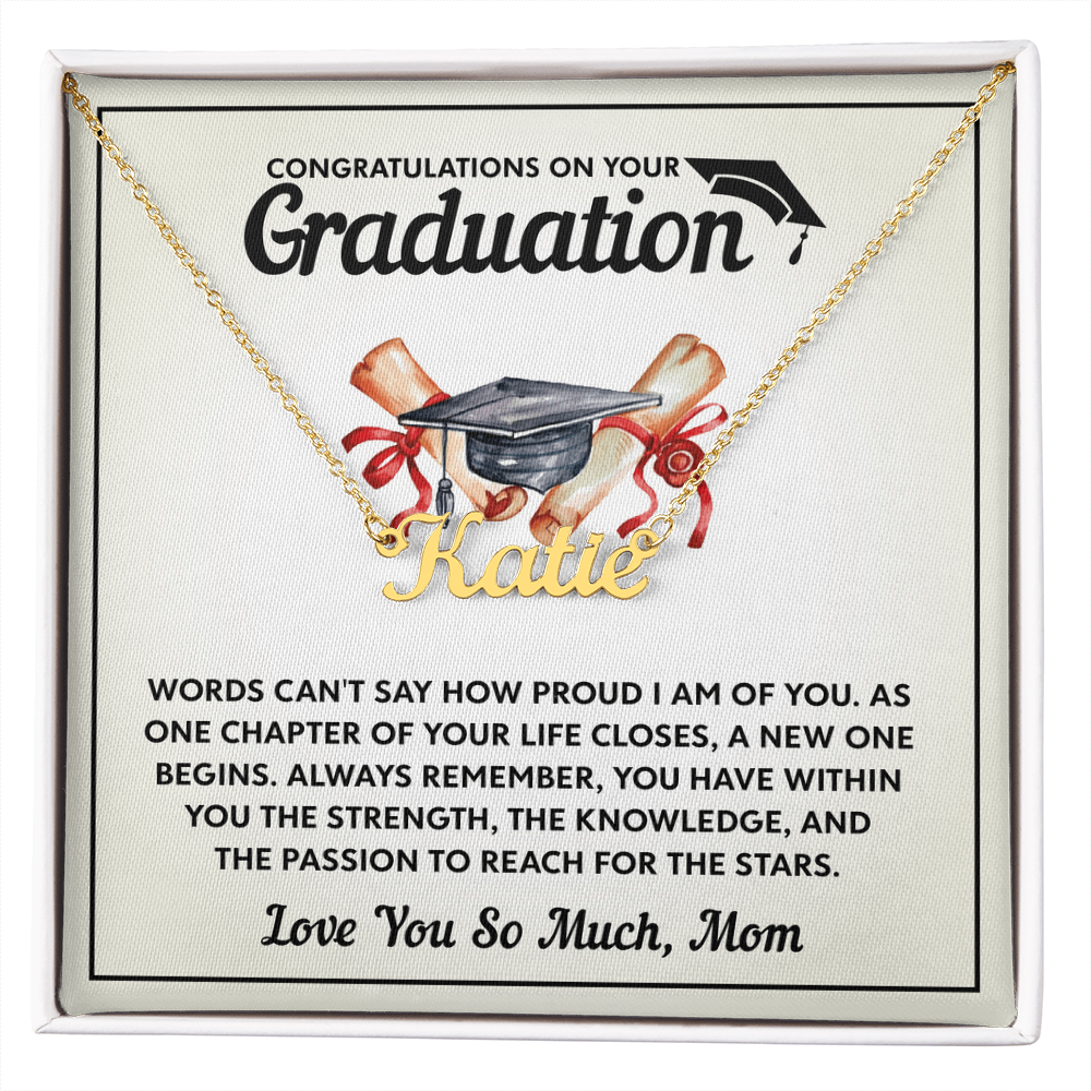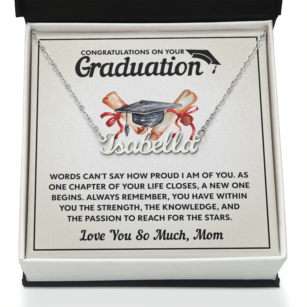 Discover the perfect graduation gift with custom name necklaces for women. Elegant designs made to honor the special bond between mothers and daughters on their big day.