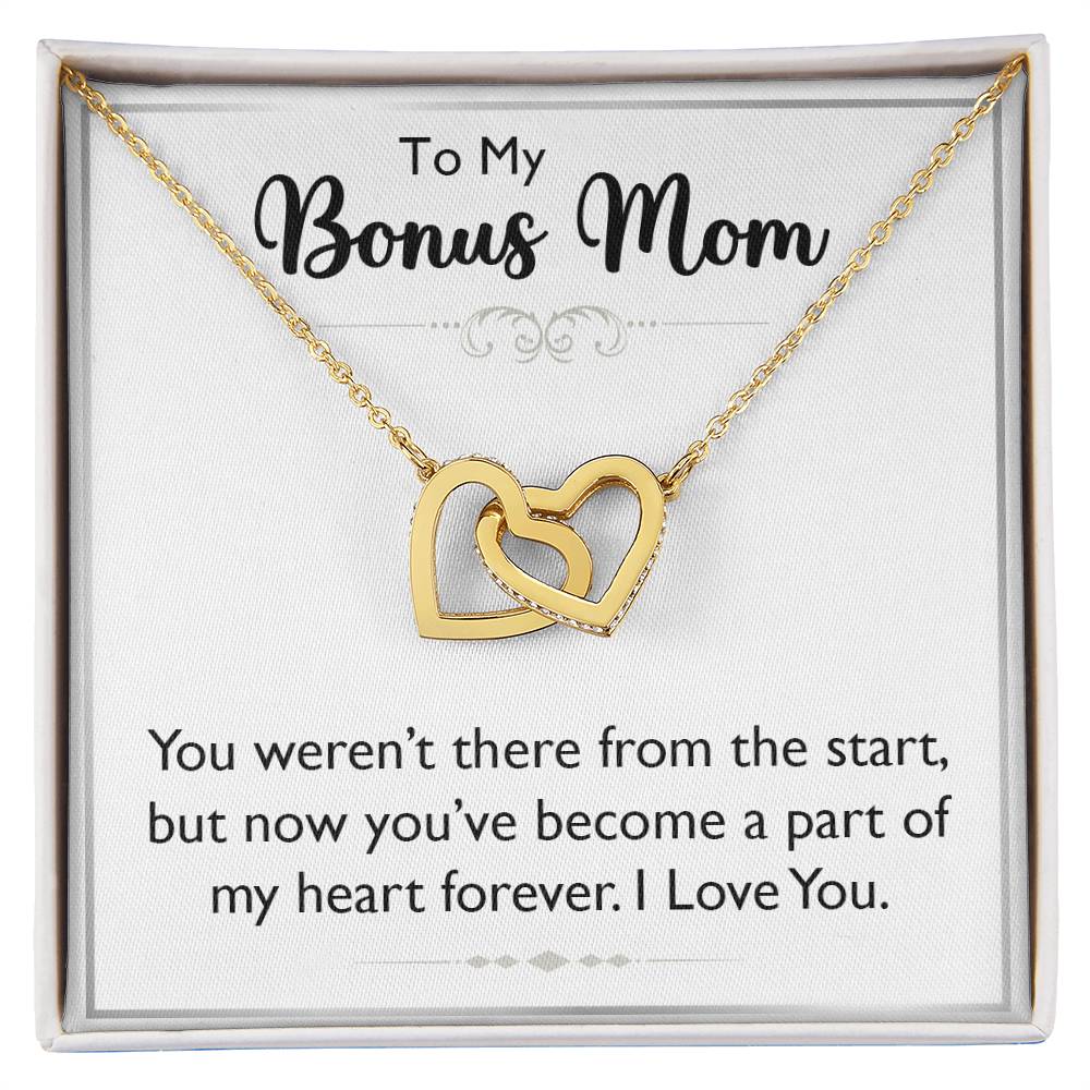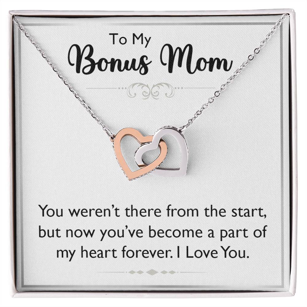 To My Bonus Mom Interlocking Heart Necklace, Meaningful Gift for Mother's Day & Birthdays to Show Your Love and Appreciation