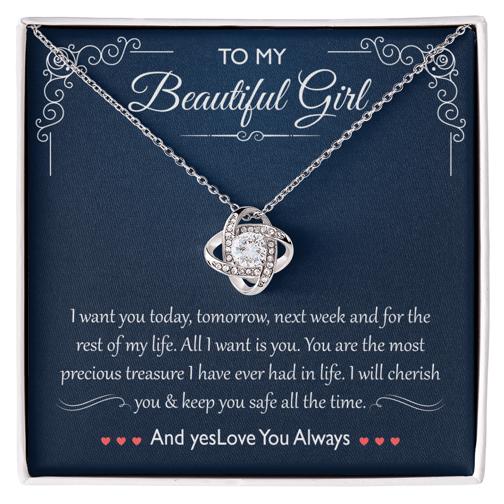 Imagine her reaction receiving this beautiful Love Knot Necklace. Representing an unbreakable bond between two souls, this piece features a beautiful pendant embellished with premium cubic zirconia crystals. Surprise your loved one with this gorgeous gift today!