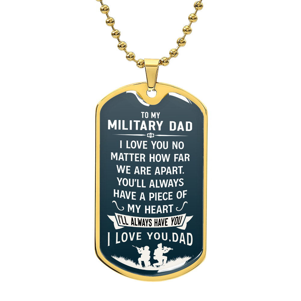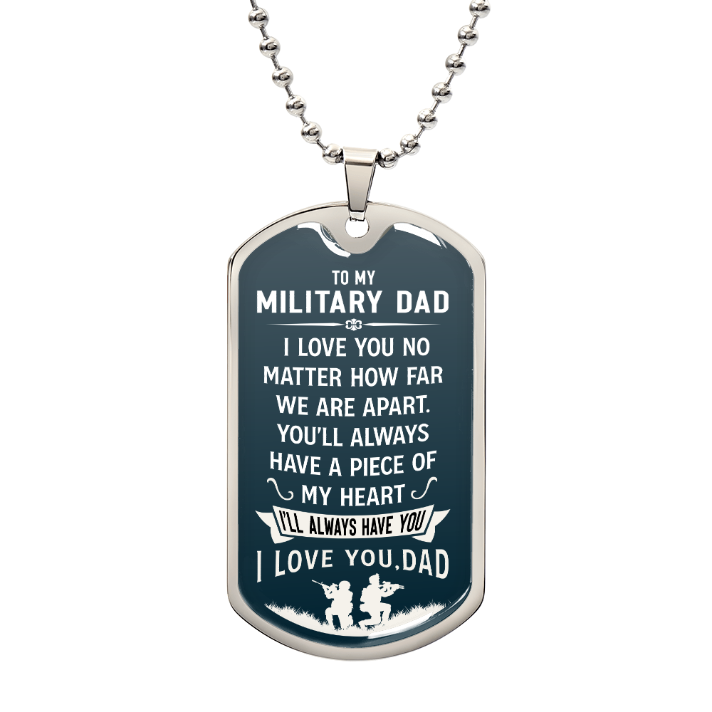 Celebrate your Military Dad with this heartfelt dog tag necklace. A luxury gift from son or daughter for birthdays, Father’s Day, or any day to show your love and pride.