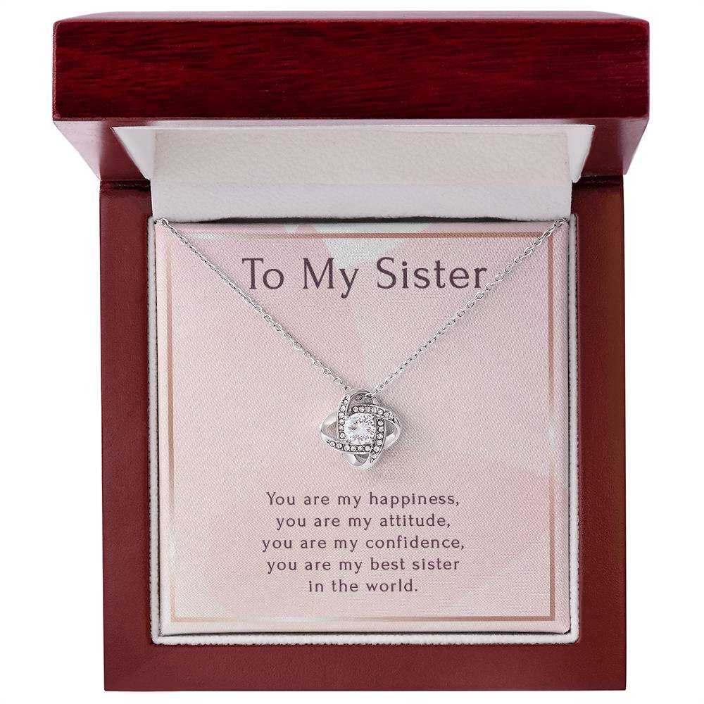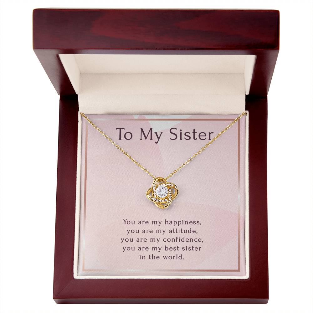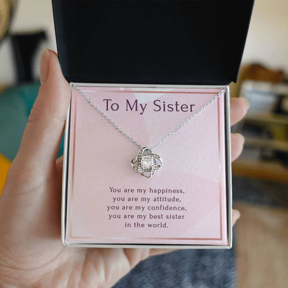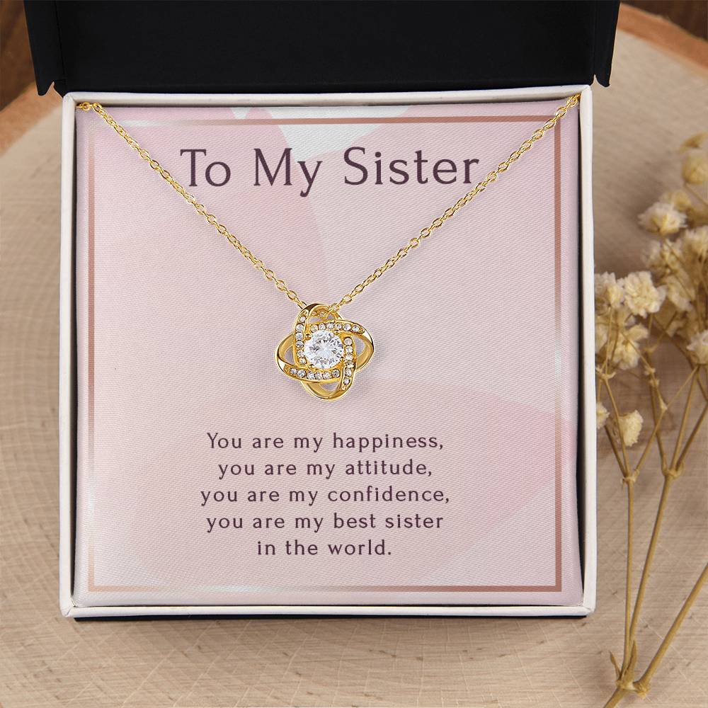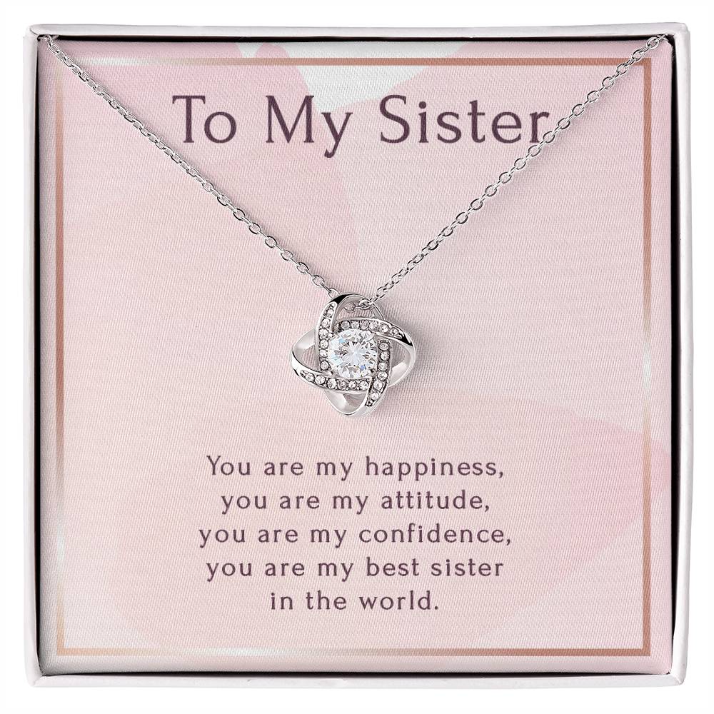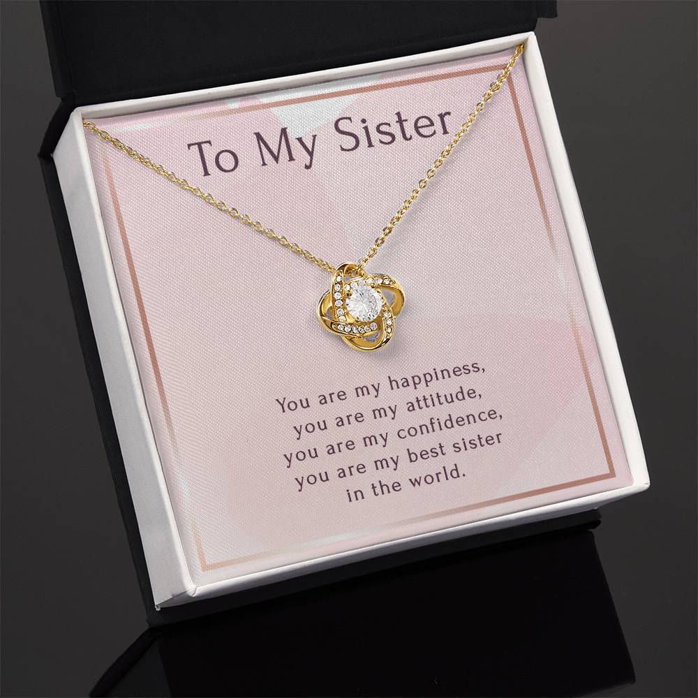Celebrate the unbreakable bond between sisters with this stunning Love Knot Necklace. Featuring a 6mm cubic zirconia stone and available in 14k white gold or 18k yellow gold finishes, this adjustable sterling silver necklace is a perfect birthday gift from a sister. A timeless keepsake she'll cherish forever.