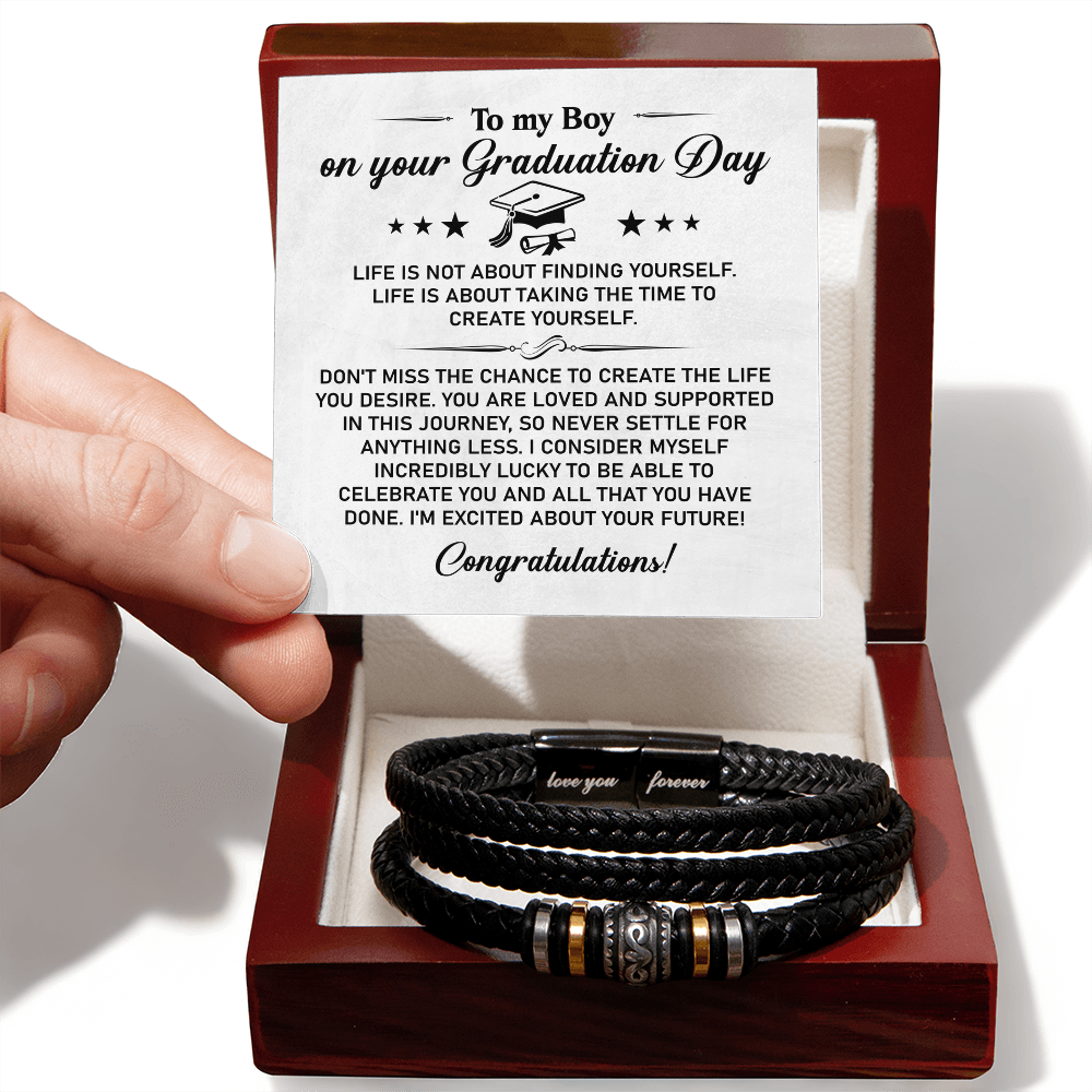 A touching bracelet gift for your son’s graduation. Mark the day with love, encouragement, and pride with this meaningful keepsake piece.
