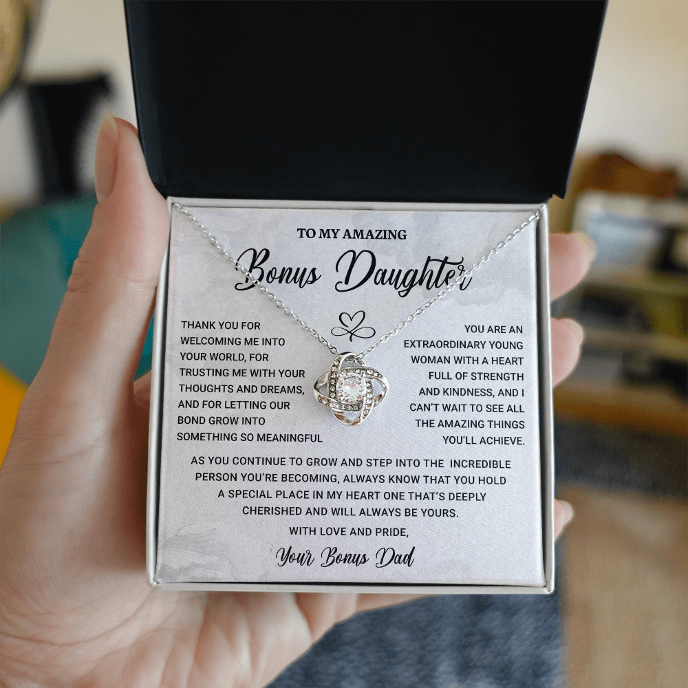 To My Step Daughter Love Knot Necklace Gifts, Jewellery Gifts for Daughter from Dad