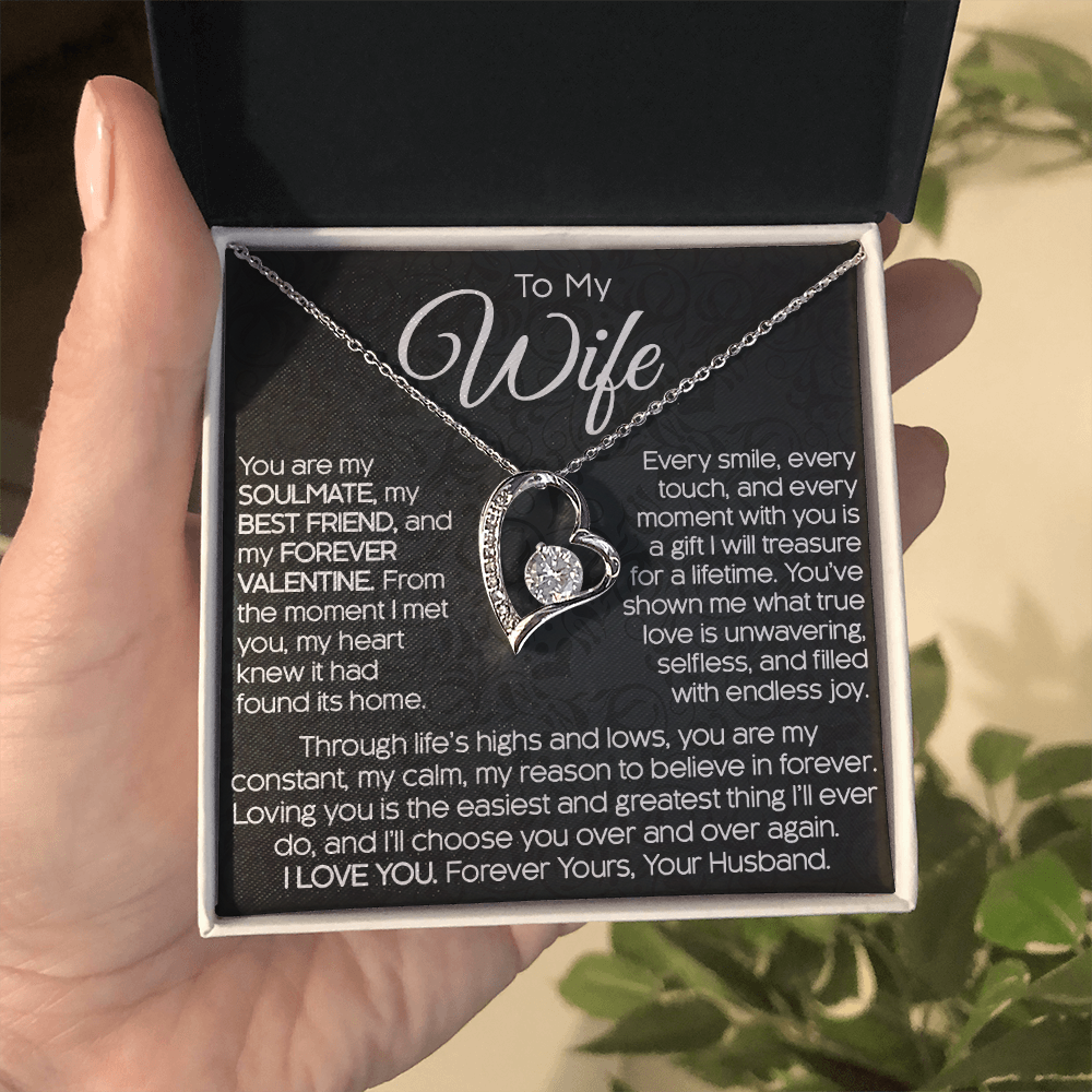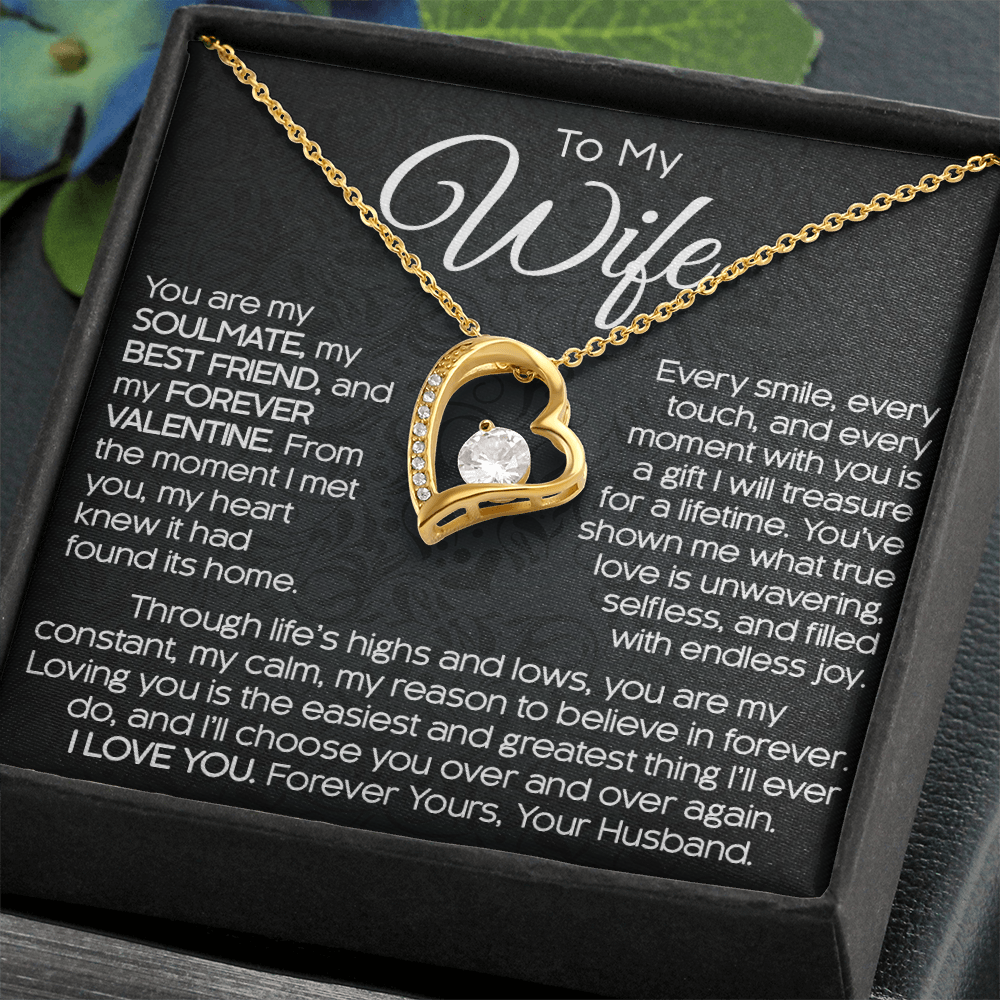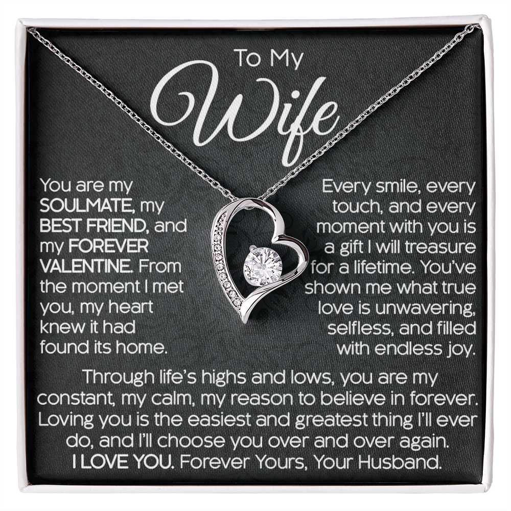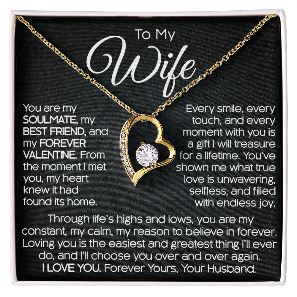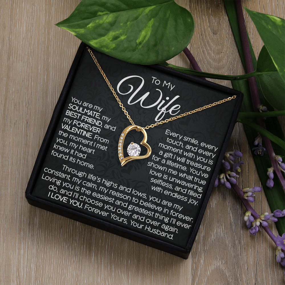 To my wife, you are my soulmate, my best friend, and my forever Valentine. From the moment I met you, my heart found its home. Every smile, touch, and moment with you is a treasure. Through life's highs and lows, you are my constant and my forever. I love you endlessly and choose you every day. Forever yours.